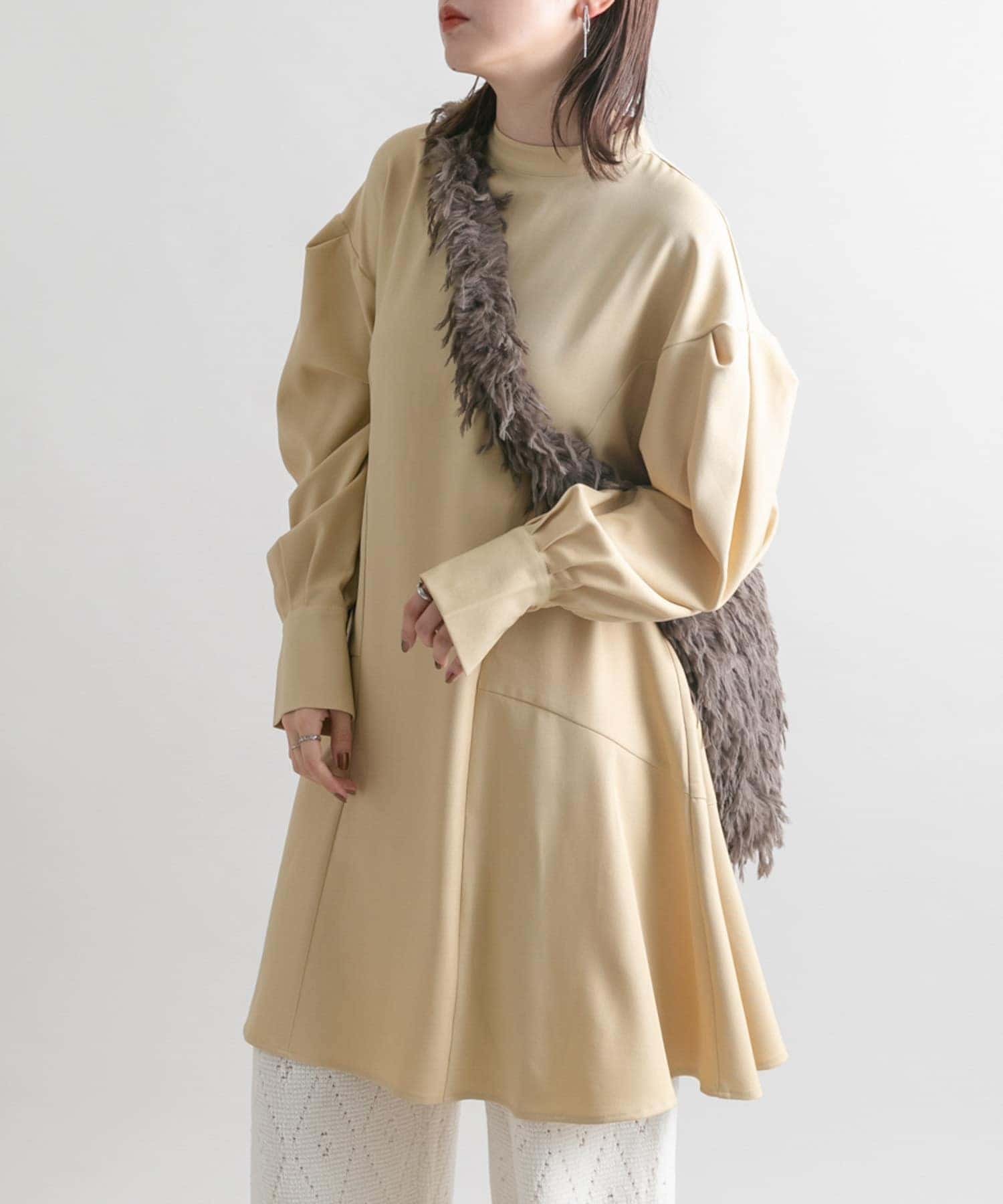 Платье мини-длины с объемными пышными рукавами. Чтобы избежать излишней слащавости, добавлены складки для придания объема, а приспущенные плечи создают утонченный образ. Красивый расклешенный подол и воротник-стойка также являются изюминкой. Это платье придаст вам милый и изысканный вид и отлично сочетается с повседневной одеждой.