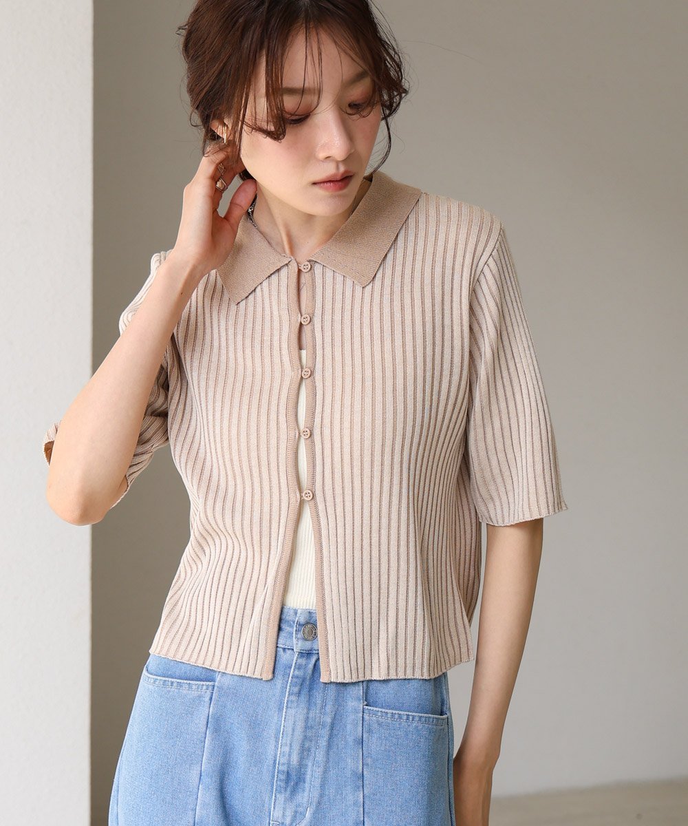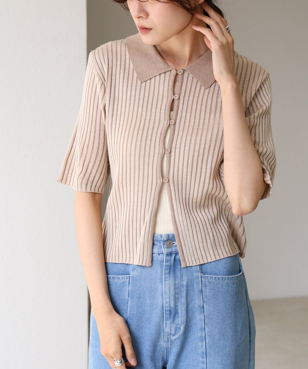 POINTАккуратный трикотаж с воротником и привлекательной цветовой гаммой.Нежные акцентные цвета вокруг воротника и пуговиц придают ему простой, но изысканный вид.Аккуратный воротник делает его изысканным, идеально подходящим для поездок на работу или прогулок.Обязательный элемент гардероба в этом сезоне, который создает изысканный образ, просто надев его.