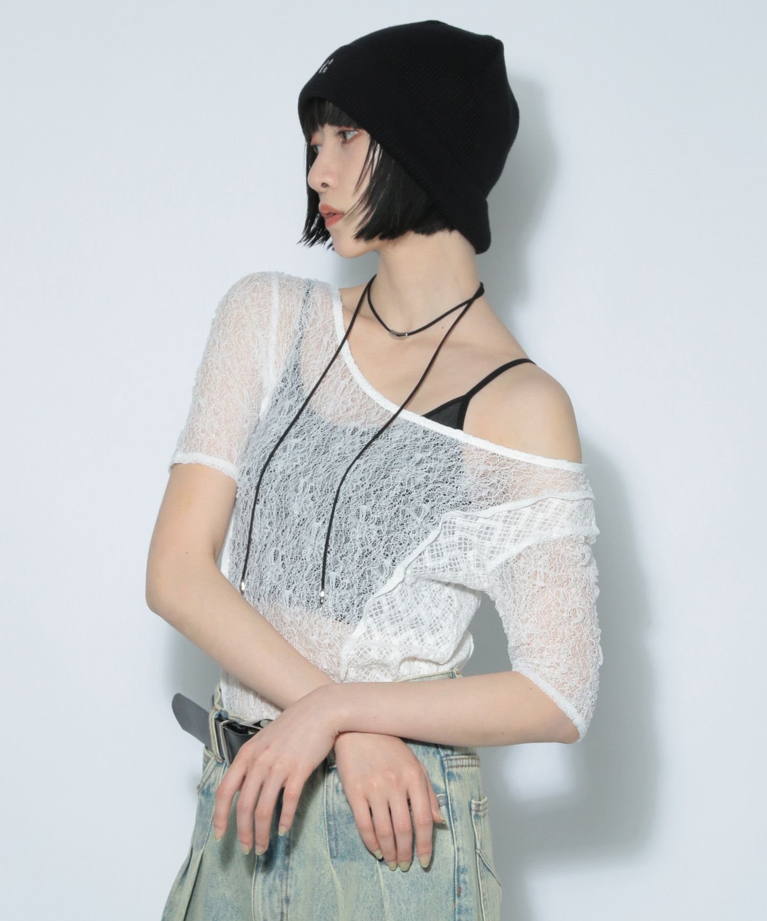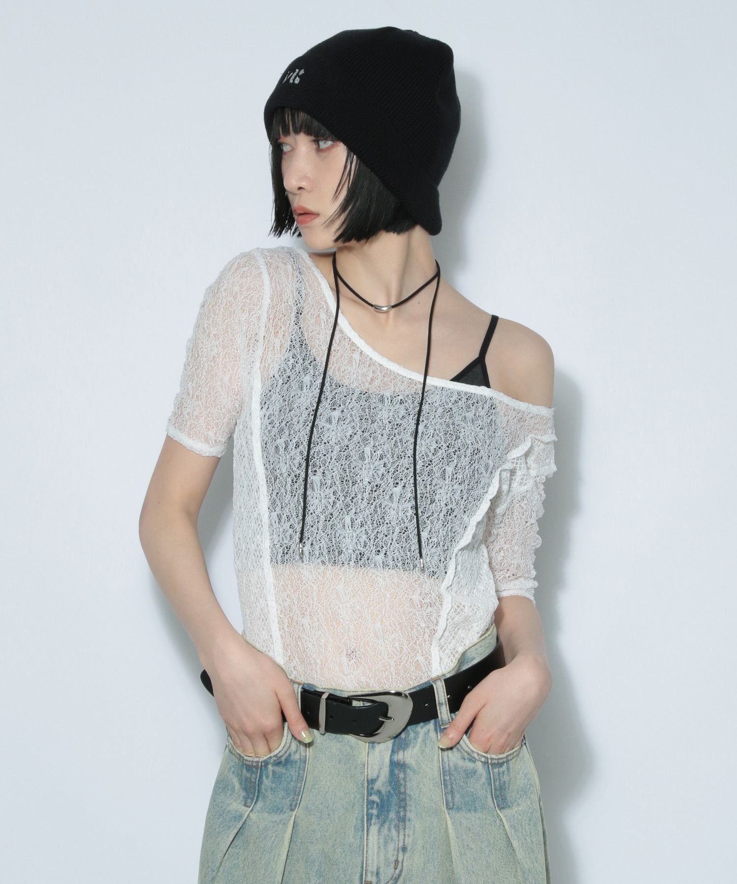 \Прозрачное кружево, скроенное и сшитое из двух материалов с текстурированной поверхностью/