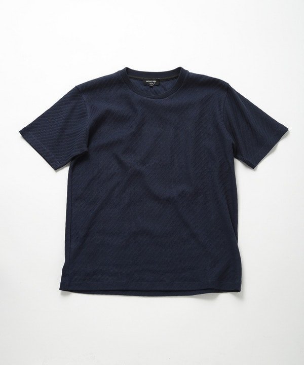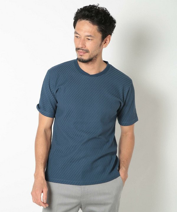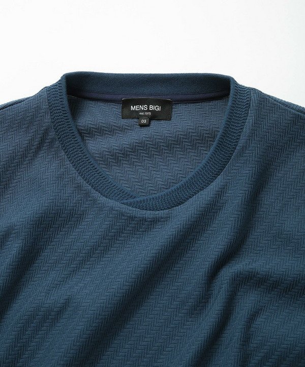 Футболка с геометрическим узором, созданным с помощью звеньевой вязки.