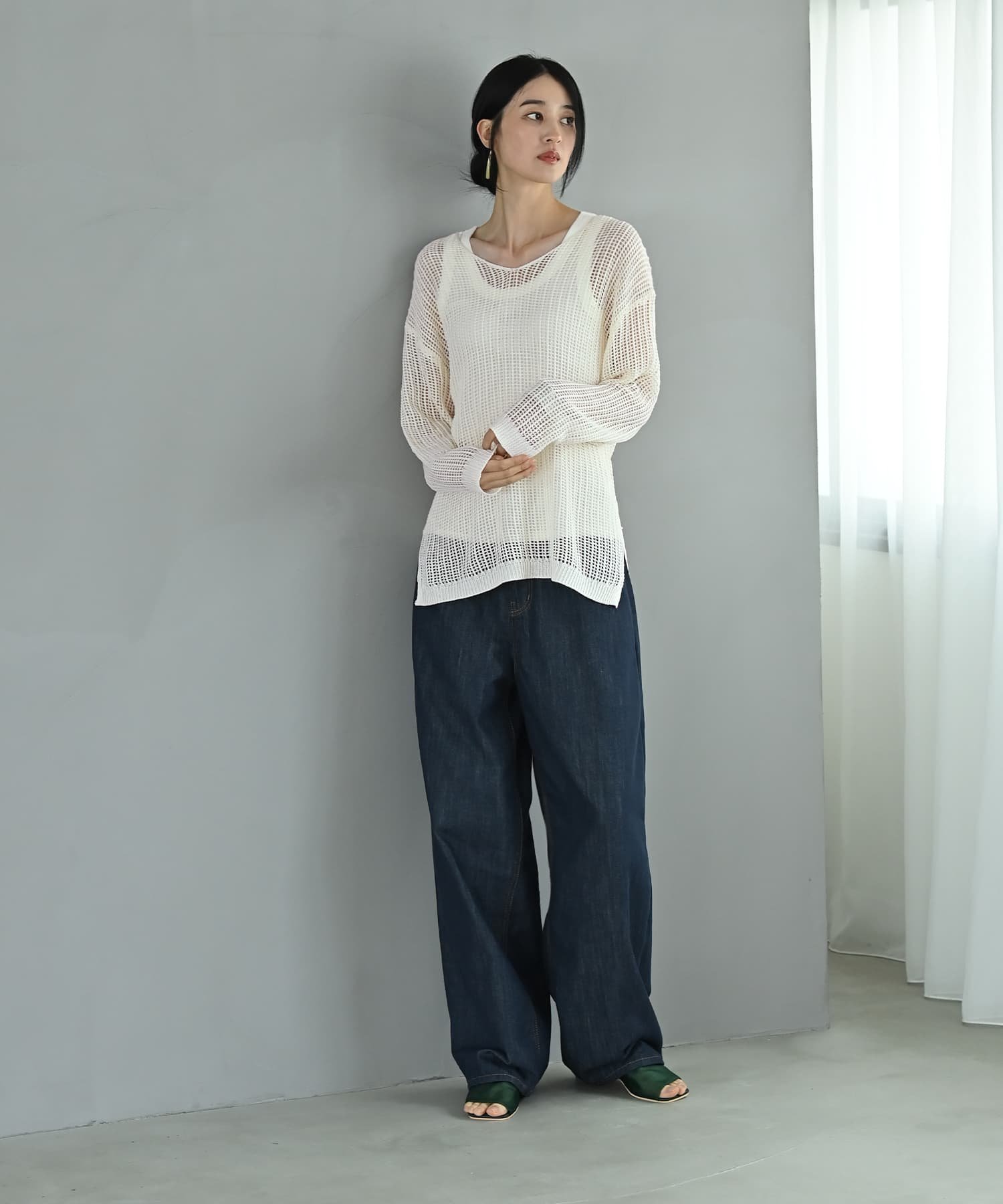 Благодаря свободному крою и длине, закрывающей бедра, он не подчеркивает линии тела и создает ощущение расслабленности. Дышащий сетчатый трикотаж приятен в носке даже летом, а его привлекательность заключается в том, как он меняет свой вид в зависимости от нижнего белья.