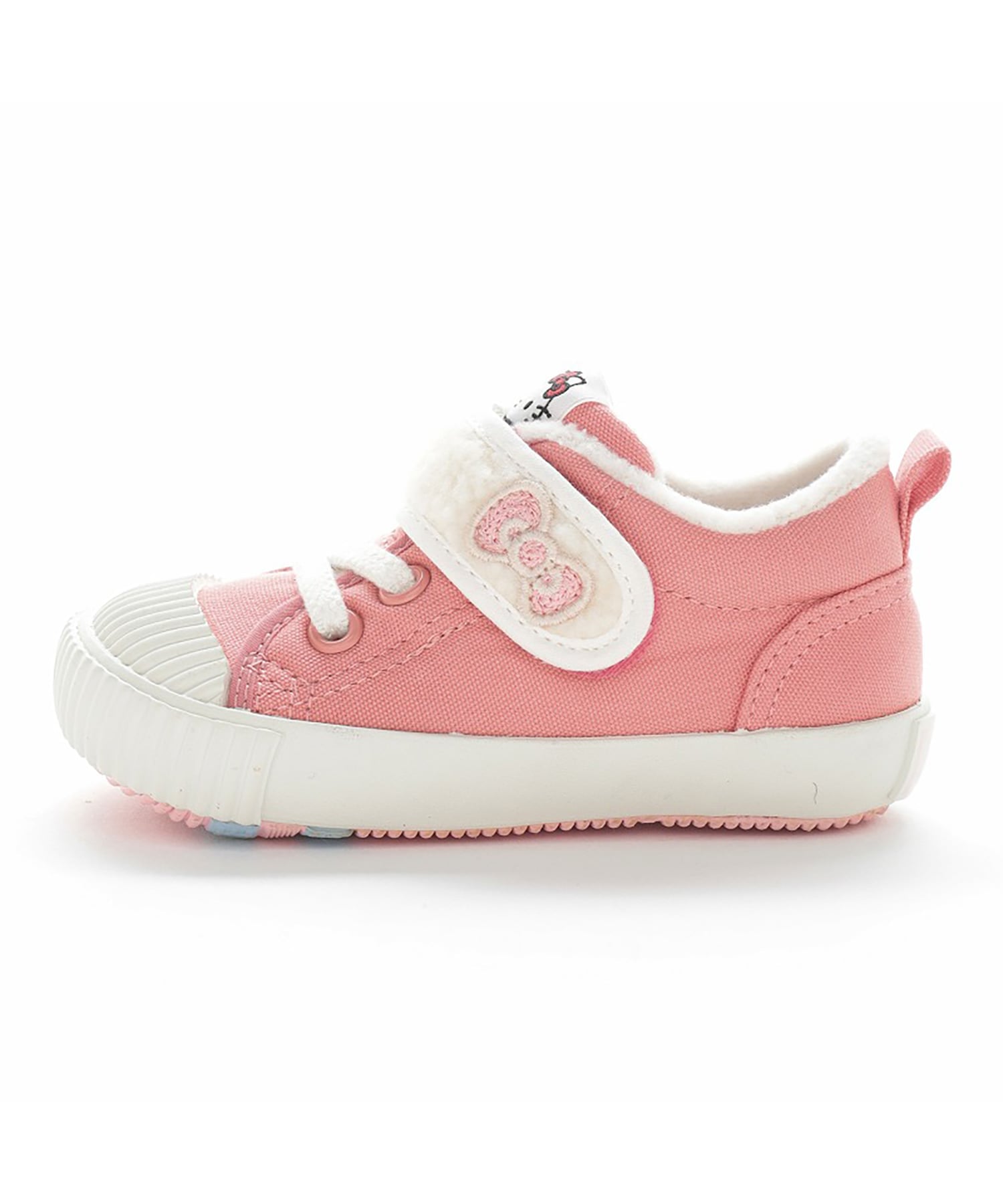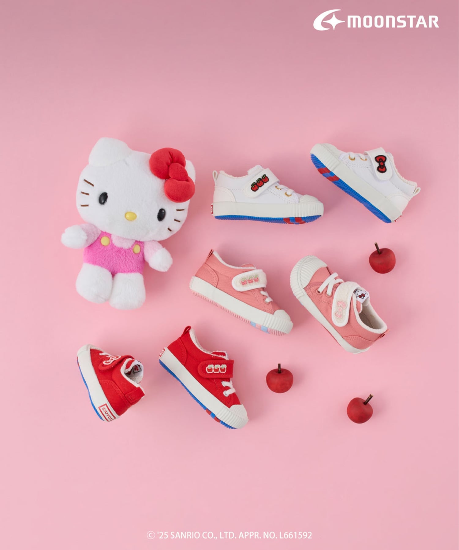Вторая модель из юбилейной серии — это результат сотрудничества с Hello Kitty, самым популярным национальным персонажем Японии. На подъеме стопы расположена лента в форме Hello Kitty и вышитые три яблока, поскольку Hello Kitty весит столько же, сколько три яблока. Также стоит отметить лимитированную серию атласных наклеек на стельку и тканую именную бирку. Вневременной дизайн гарантирует долговечность и комфорт на долгие годы. Вулканизированная конструкция обеспечивает мягкость, прочность и приятную на ощупь текстуру. Эластичные шнурки и ремешок позволяют легко надевать и снимать обувь, что делает ее подходящей для широкого круга случаев: от похода в детский сад до прогулок. Четыре уникальные особенности (просторный носок, задник, гибкая конструкция и моющаяся стелька) способствуют здоровому развитию стопы. Каждая пара обуви весит приблизительно 120 г при длине 13,0 см.
