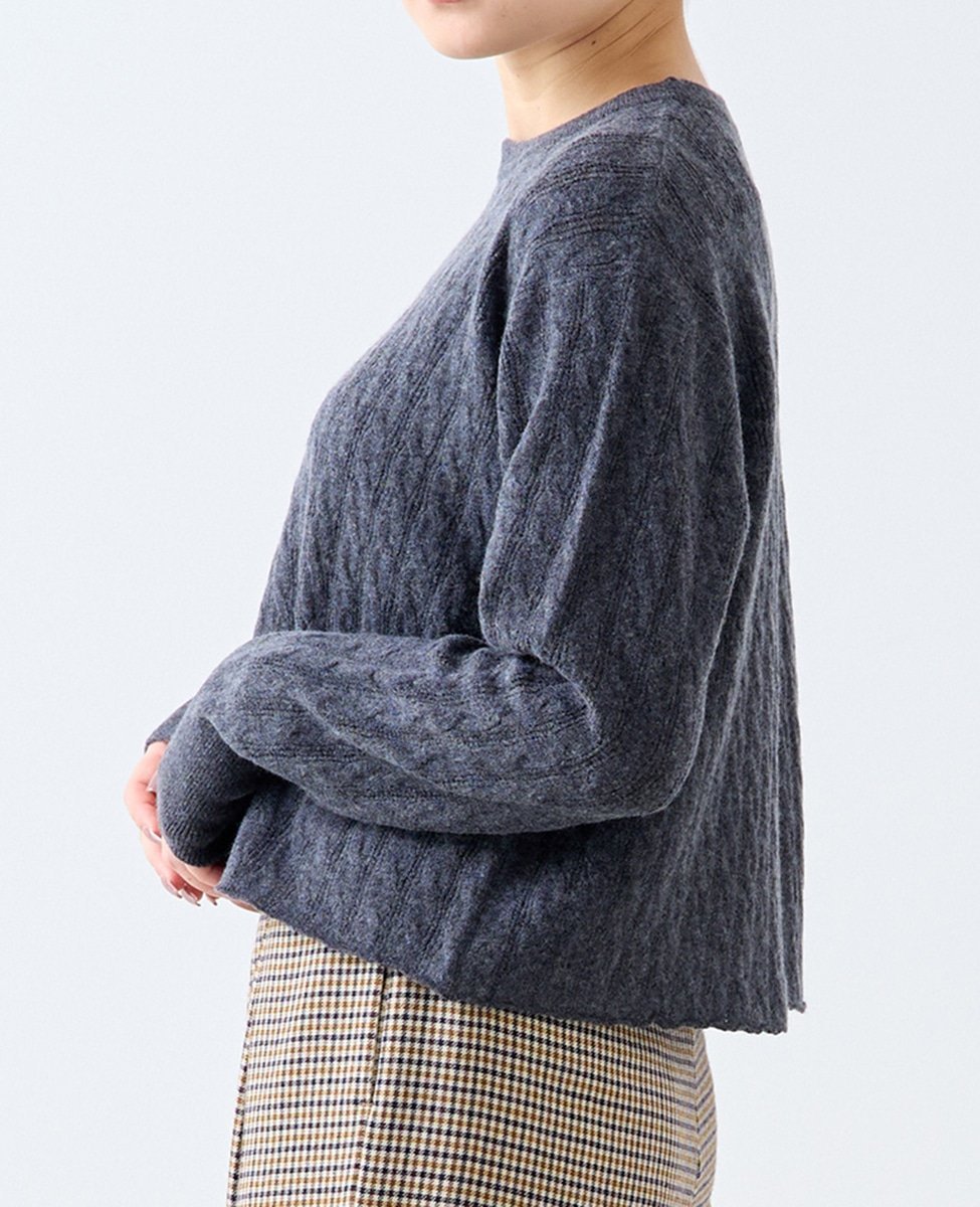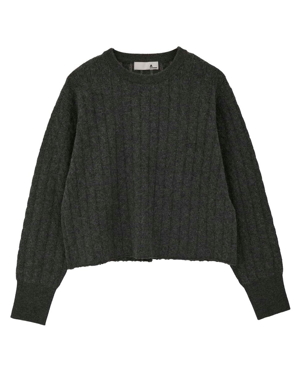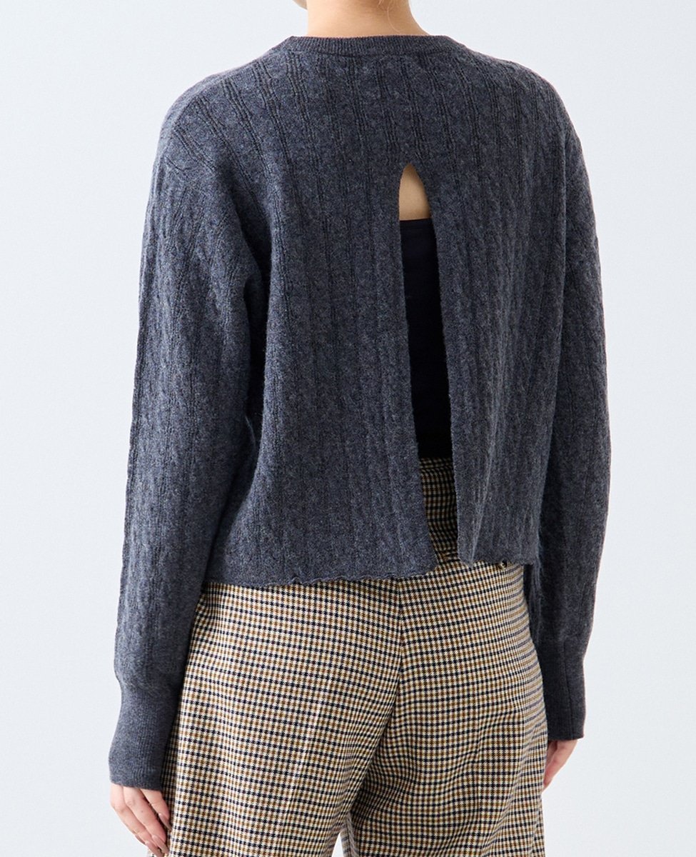 Ткань представляет собой сочетание кос и ажурной вязки. Благодаря разрезу сзади и вязаному низу, ее можно носить в повседневной жизни даже в жаркую погоду.