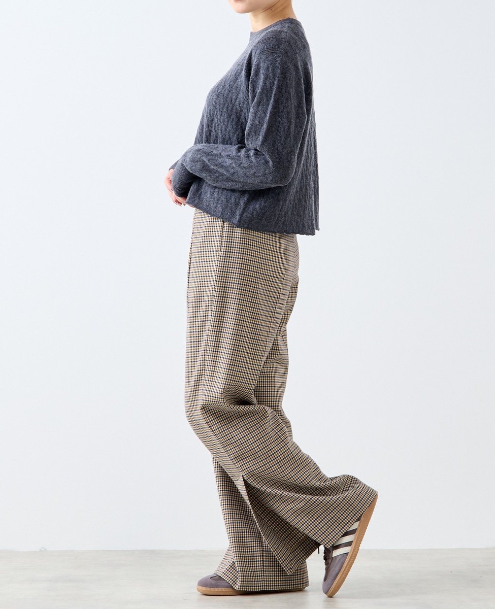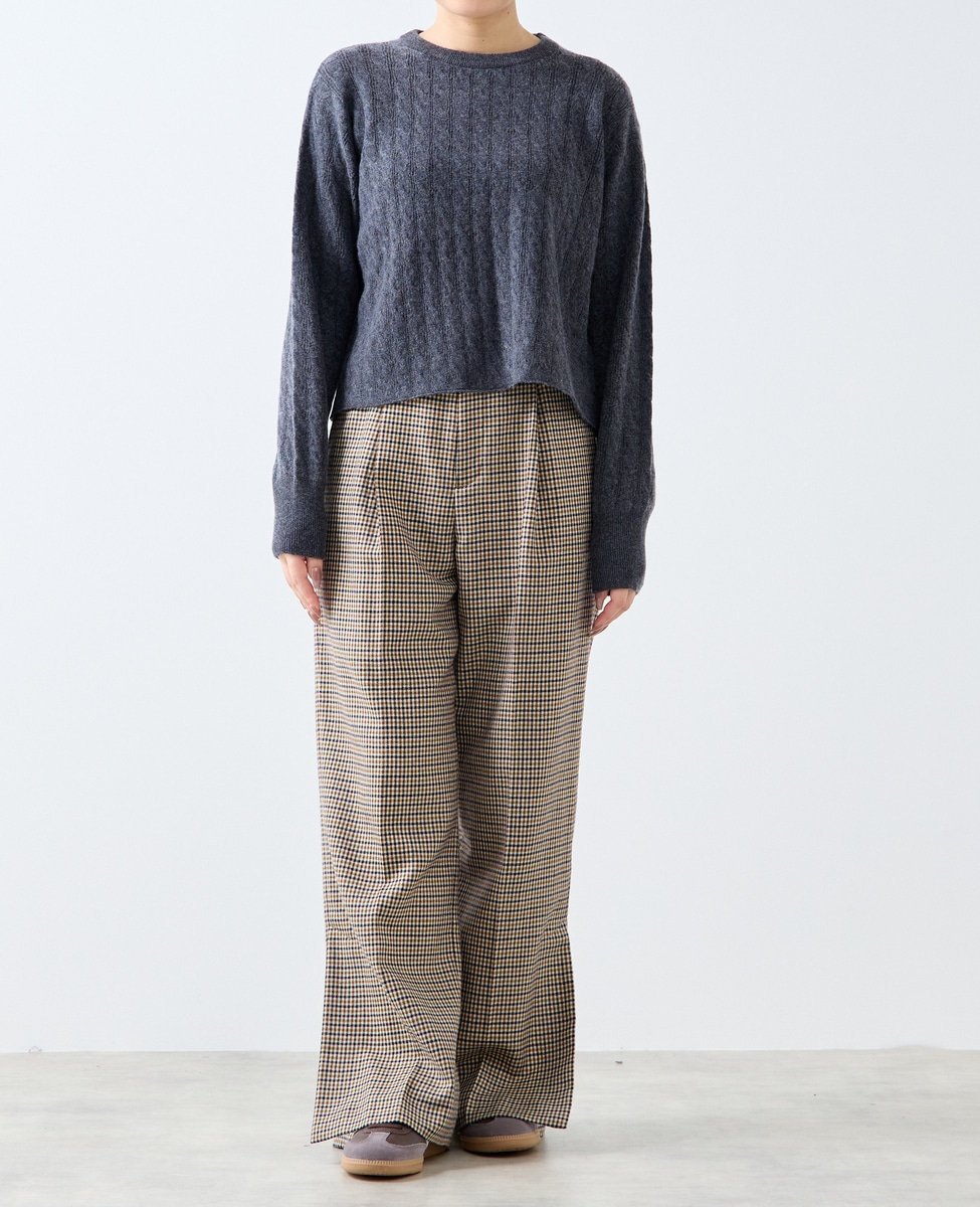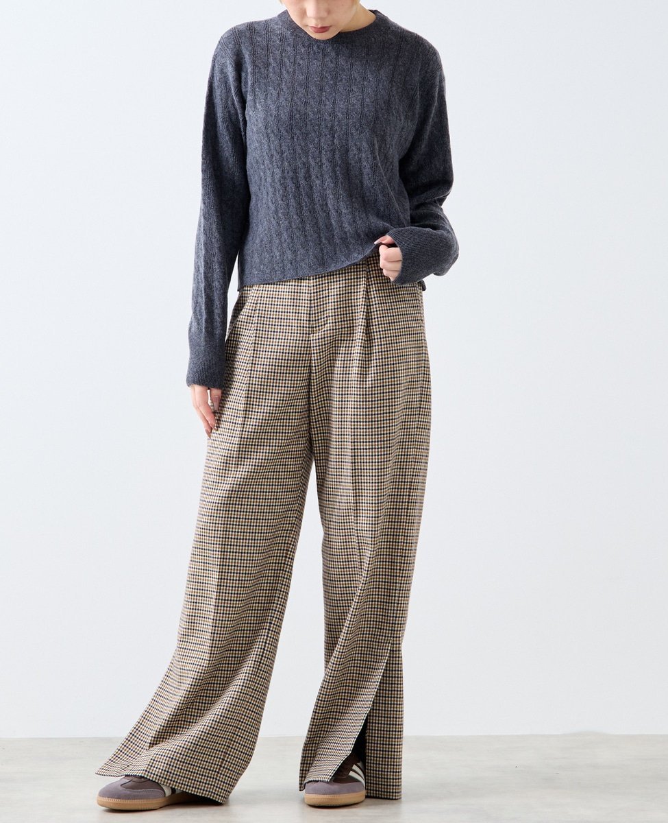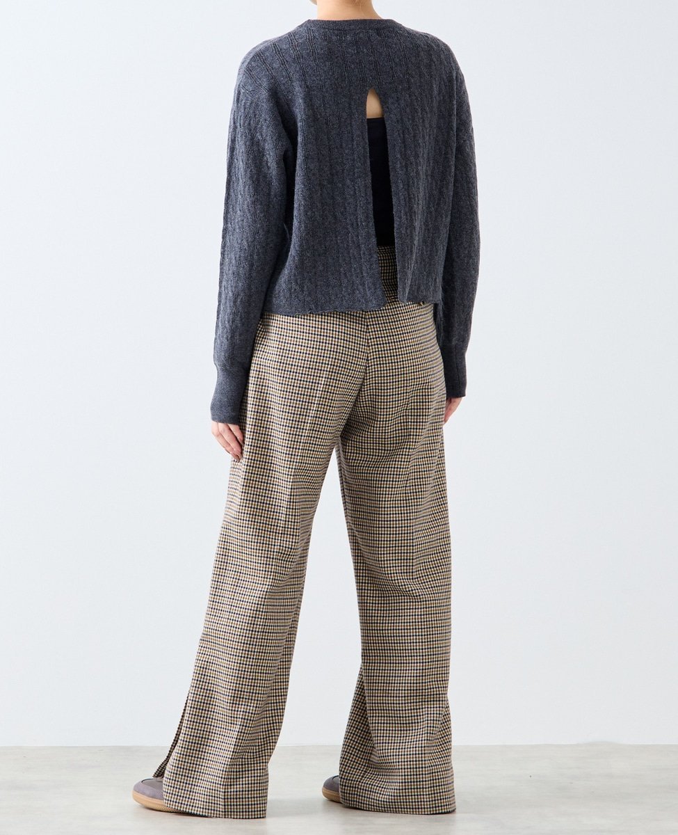 Ткань представляет собой сочетание кос и ажурной вязки. Благодаря разрезу сзади и вязаному низу, ее можно носить в повседневной жизни даже в жаркую погоду.