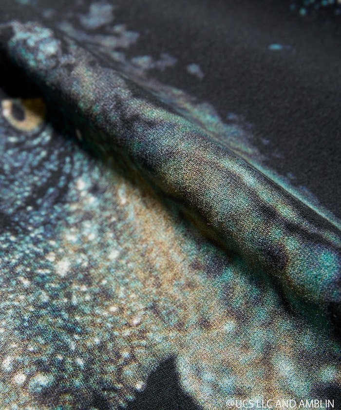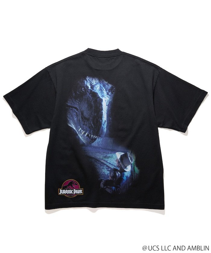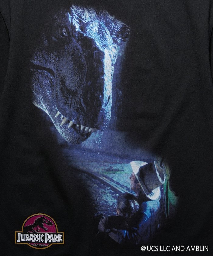 На лицевой стороне изображена знаменитая фотография культового тираннозавра, но редко можно увидеть ее напечатанной в таком большом размере. Под тираннозавром расположены логотипы Universal и Amblin. На оборотной стороне изображена сцена нападения тираннозавра на доктора Гранта и Тима в парке, а также знаменитый логотип «Парка Юрского периода».