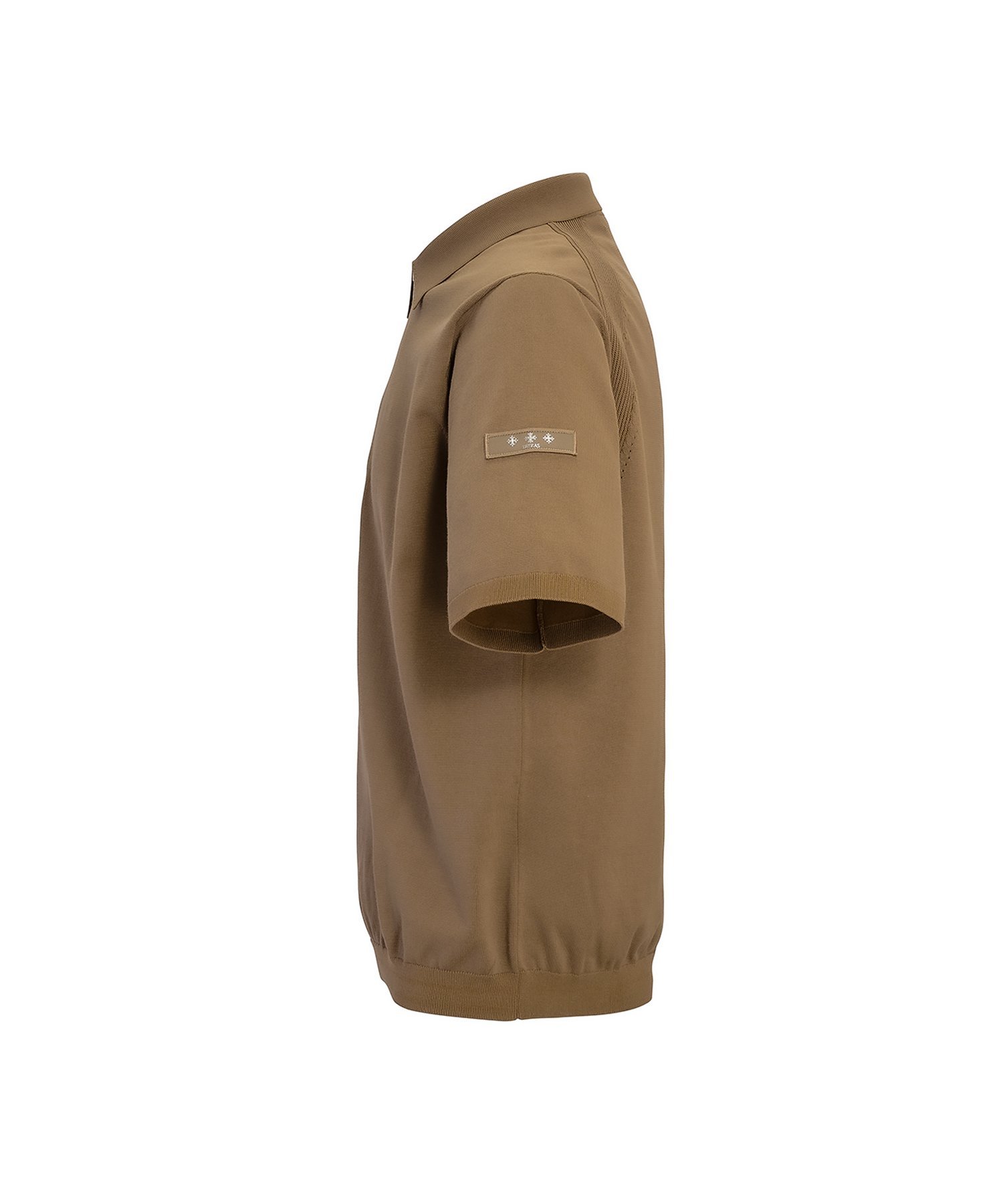Трикотажный пуловер с застежкой-молнией до середины груди, изготовленный из плотной хлопковой ткани.