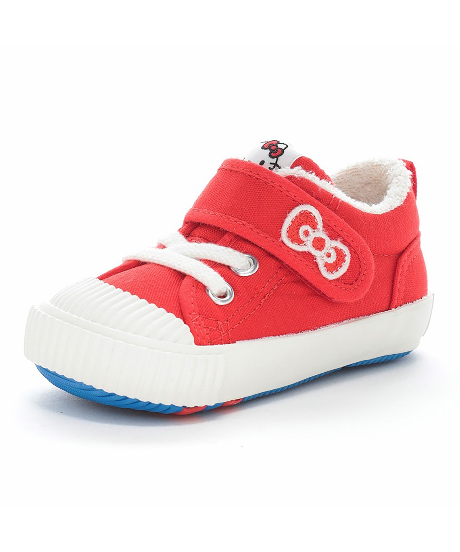 Вторая модель из юбилейной серии — это результат сотрудничества с Hello Kitty, самым популярным национальным персонажем Японии. На подъеме стопы расположена лента в форме Hello Kitty и вышитые три яблока, поскольку Hello Kitty весит столько же, сколько три яблока. Также стоит отметить лимитированную серию атласных наклеек на стельку и тканую именную бирку. Вневременной дизайн гарантирует долговечность и комфорт на долгие годы. Вулканизированная конструкция обеспечивает мягкость, прочность и приятную на ощупь текстуру. Эластичные шнурки и ремешок позволяют легко надевать и снимать обувь, что делает ее подходящей для широкого круга случаев: от похода в детский сад до прогулок. Четыре уникальные особенности (просторный носок, задник, гибкая конструкция и моющаяся стелька) способствуют здоровому развитию стопы. Каждая пара обуви весит приблизительно 120 г при длине 13,0 см.