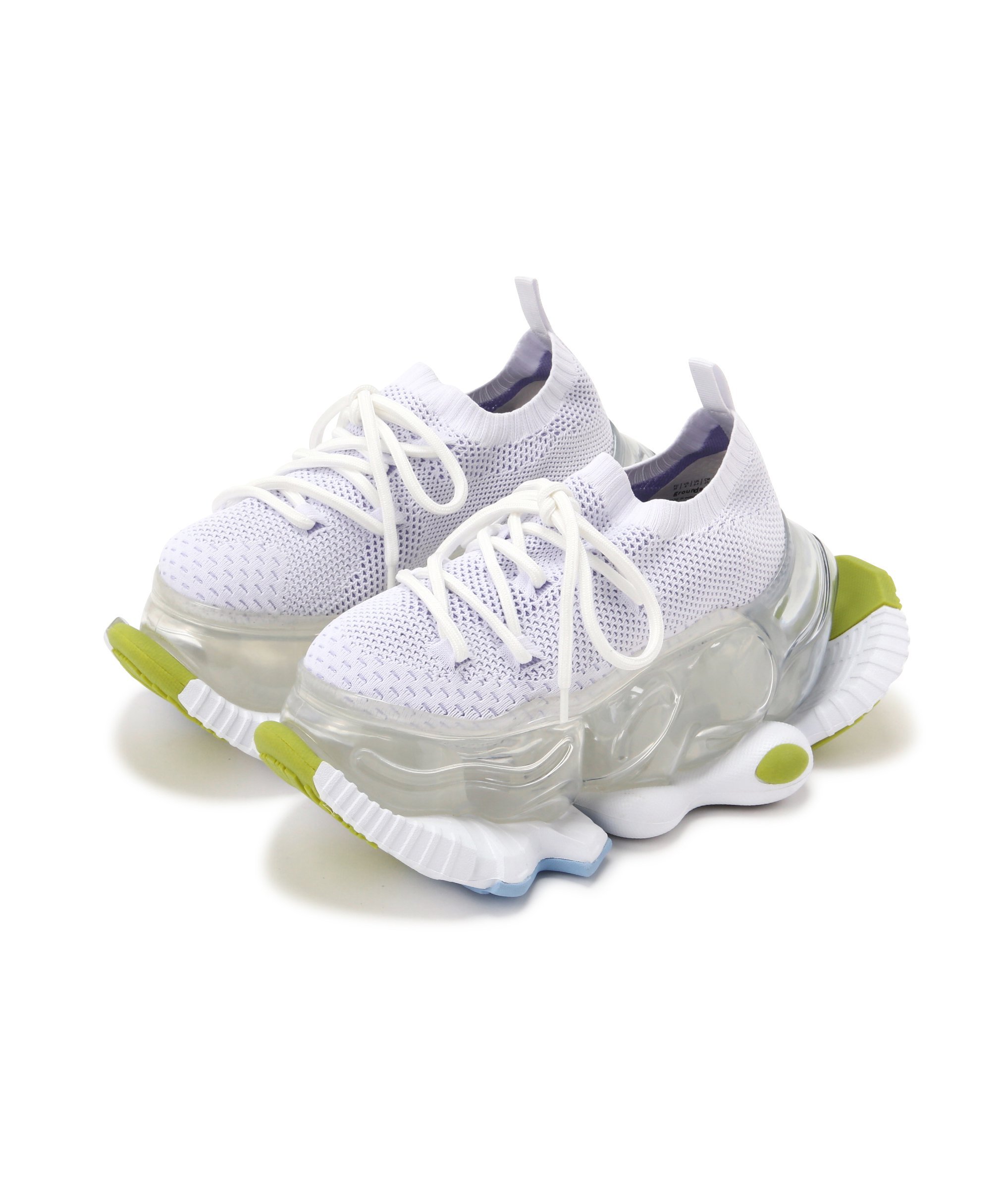 Эти кроссовки имеют объемную, похожую на облако, прозрачную подошву, состоящую из двух секций, соединенных спереди и сзади. Высота каблука составляет 8,5 см, он почти касается неба.