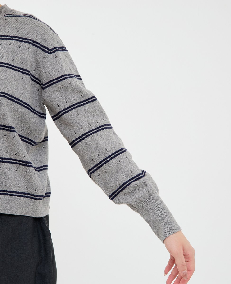 Полосатый пуловер из хлопка и кашемира, отличающийся роскошной мягкостью и традиционным ощущением.