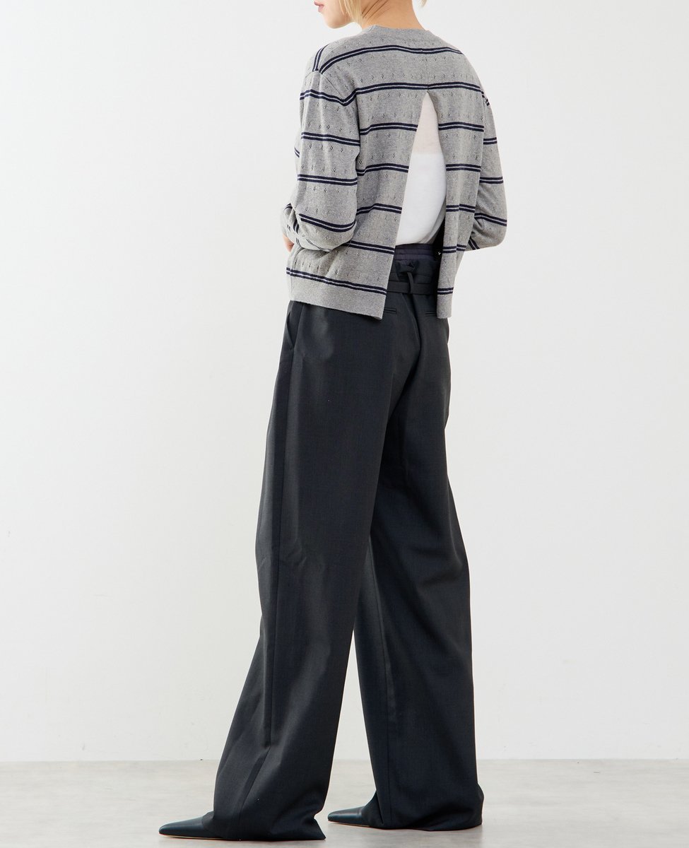 Низ обтачен ребристой вязкой, создавая трехмерный силуэт.