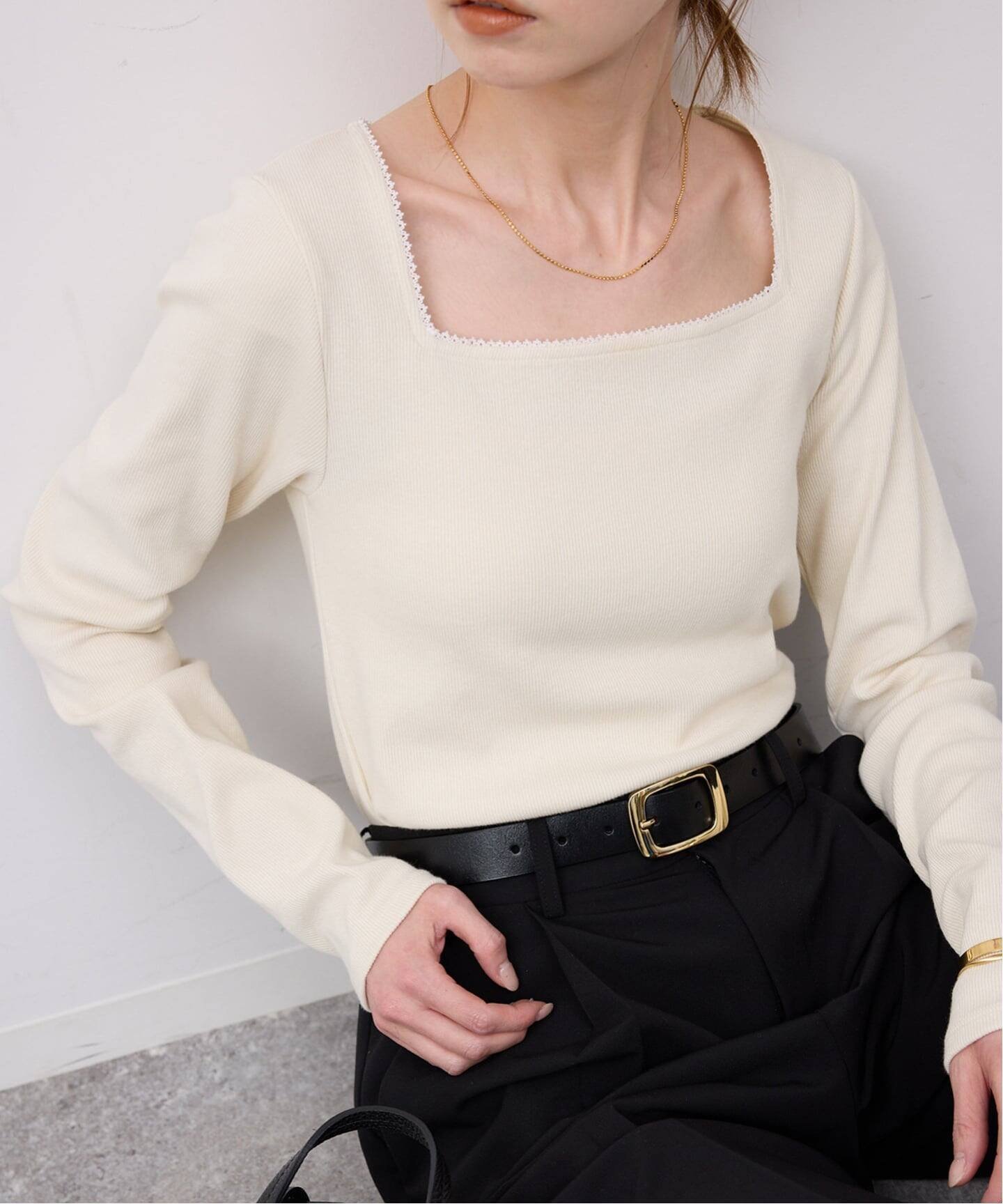 Квадратный вырез, который визуально удлиняет лицо Аккуратно.