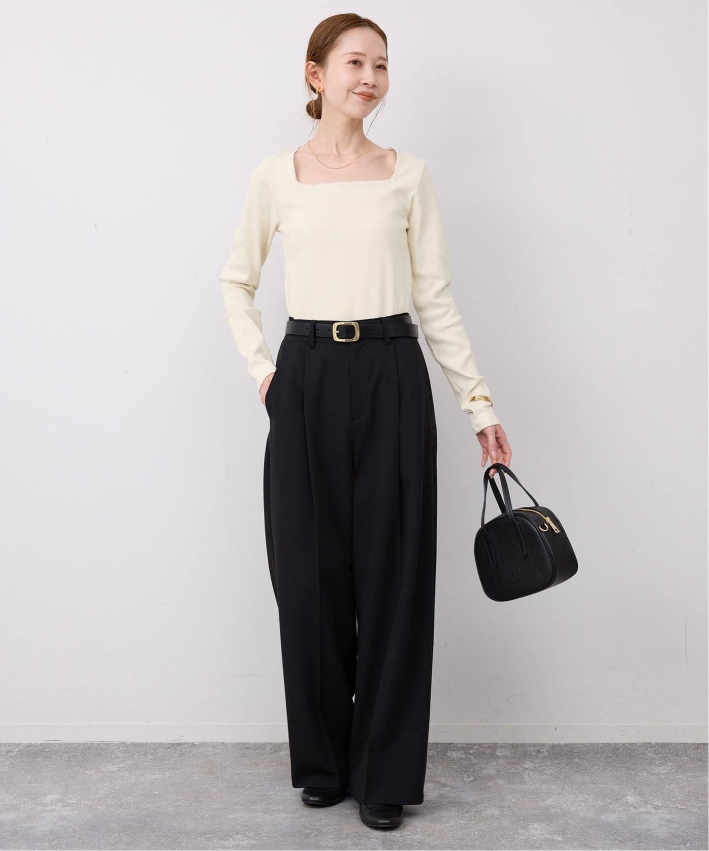 Прямой вырез горловины аккуратно подчеркивает ключицы, создавая элегантный образ.
