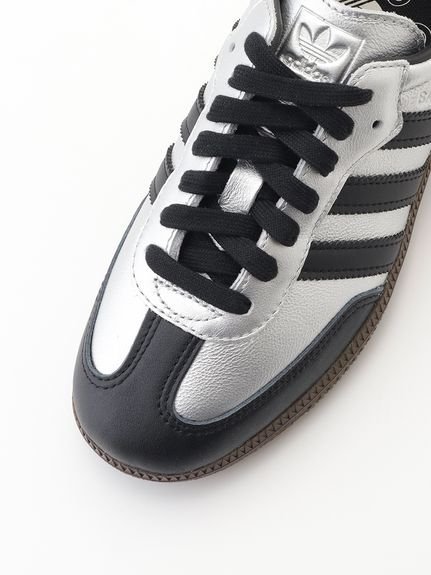 Элегантный дизайн SAMBA позволяет легко сочетать их с любым стилем, сохраняя при этом классический вид. Эта пара выполнена преимущественно в металлических цветах для создания стильного образа. Три полоски, Т-образный носок и шнурки — все черного цвета, что создает четкий и сбалансированный завершающий штрих.