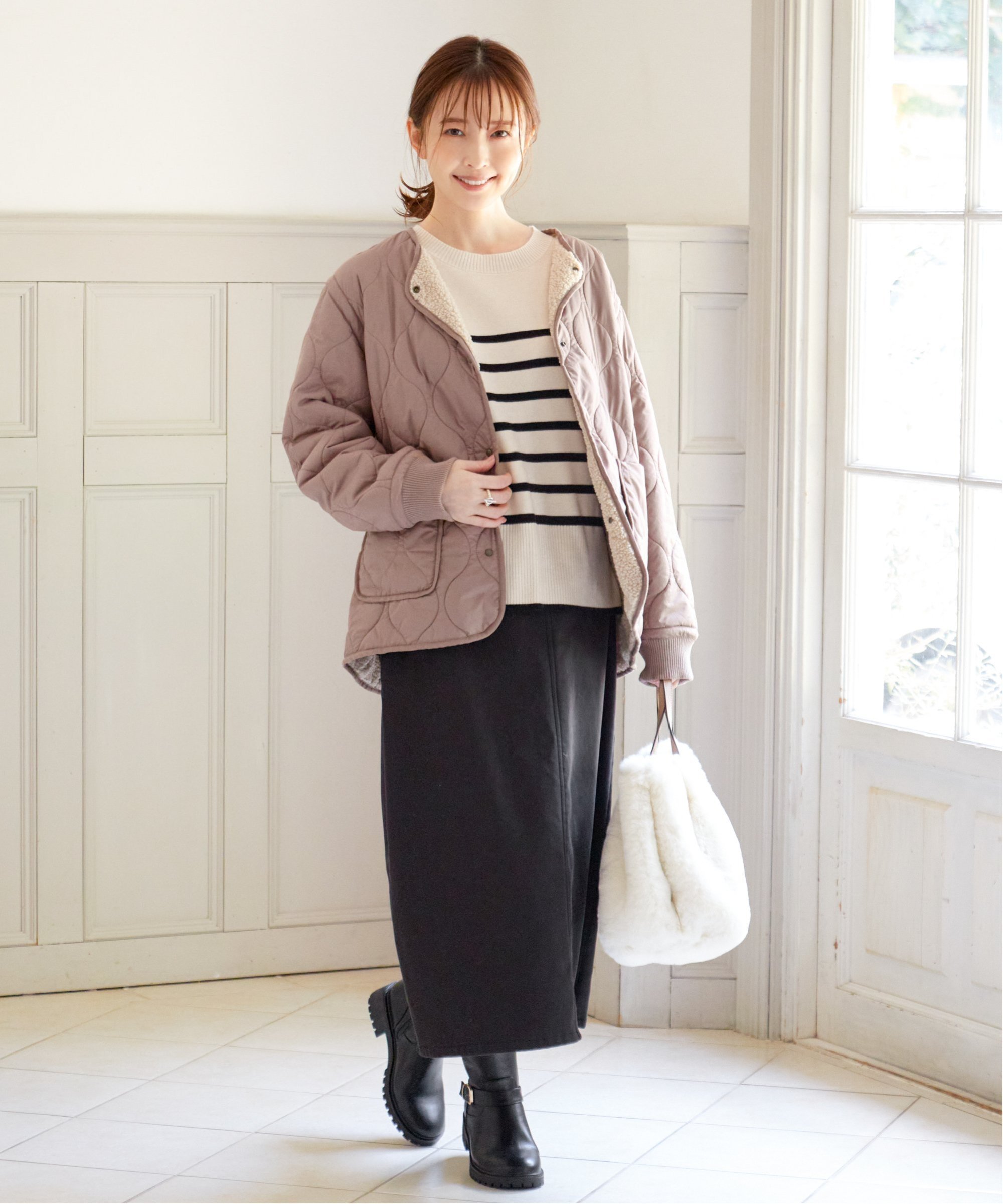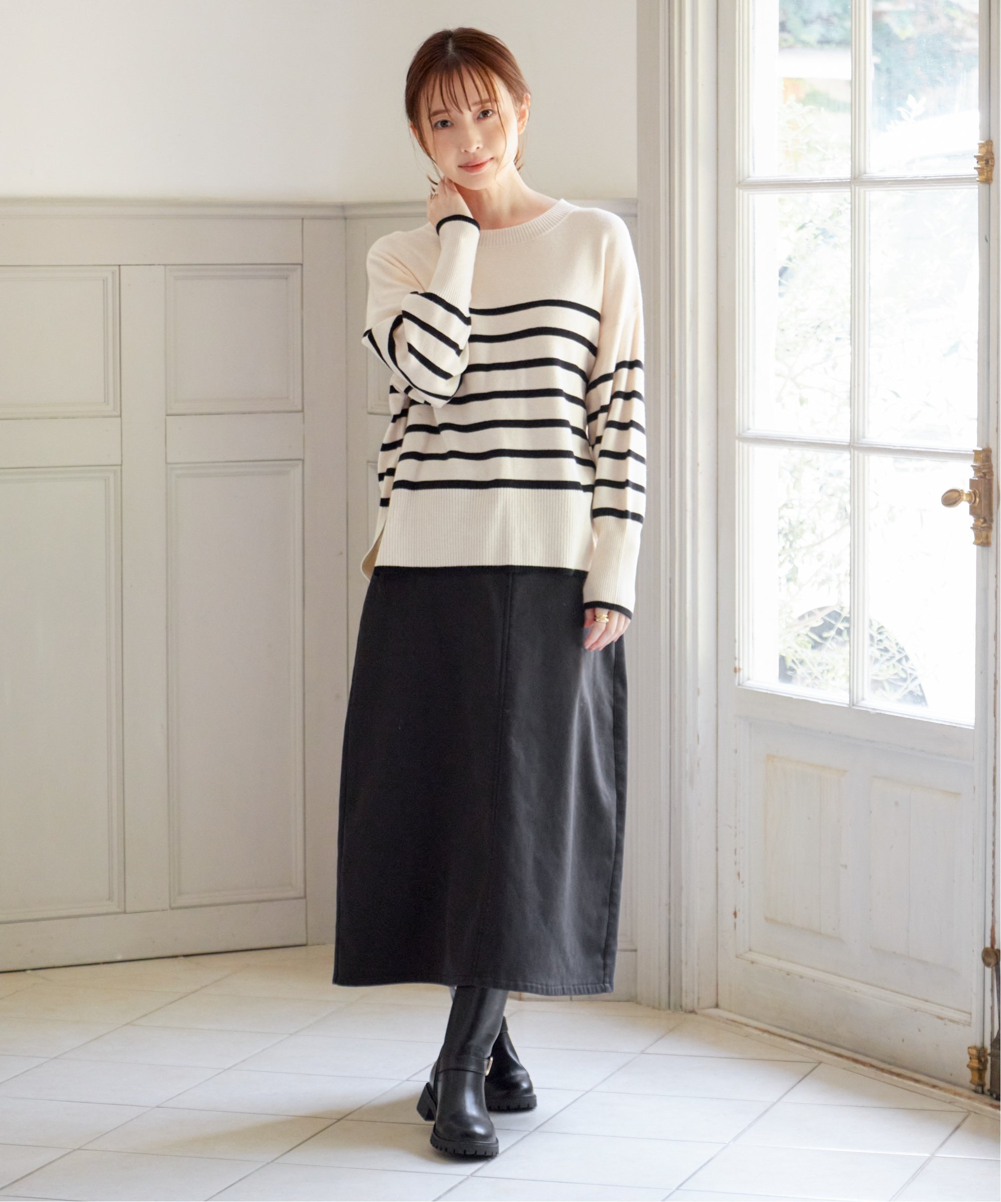 ・Кремовый полосатый трикотаж (120~160 см)
