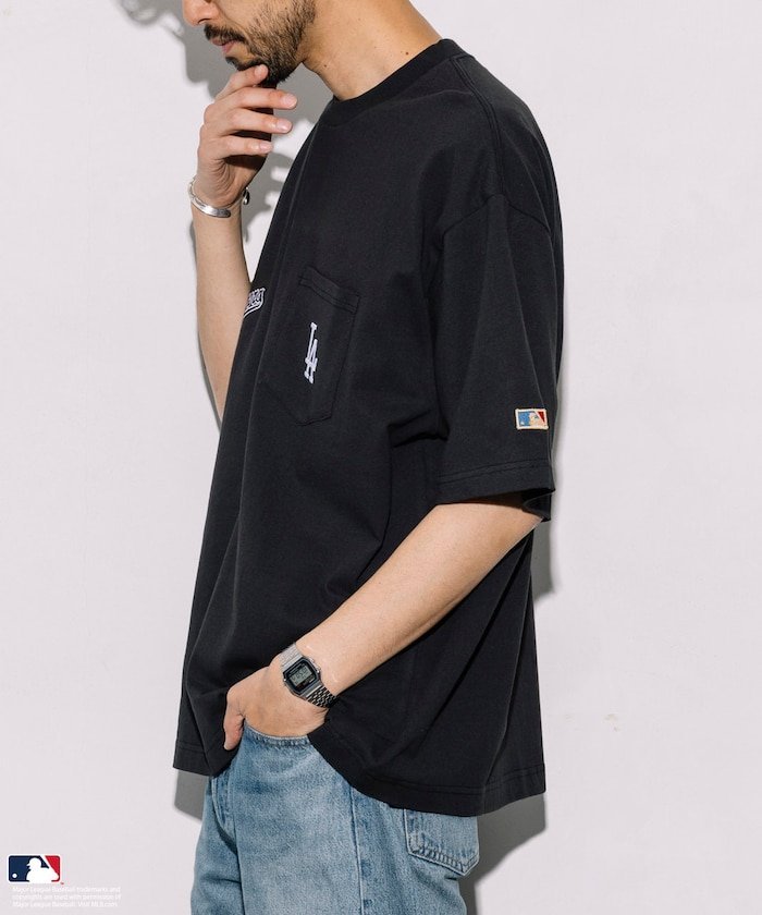 Футболка, сшитая по фигуре, с логотипом MLB и карманом.