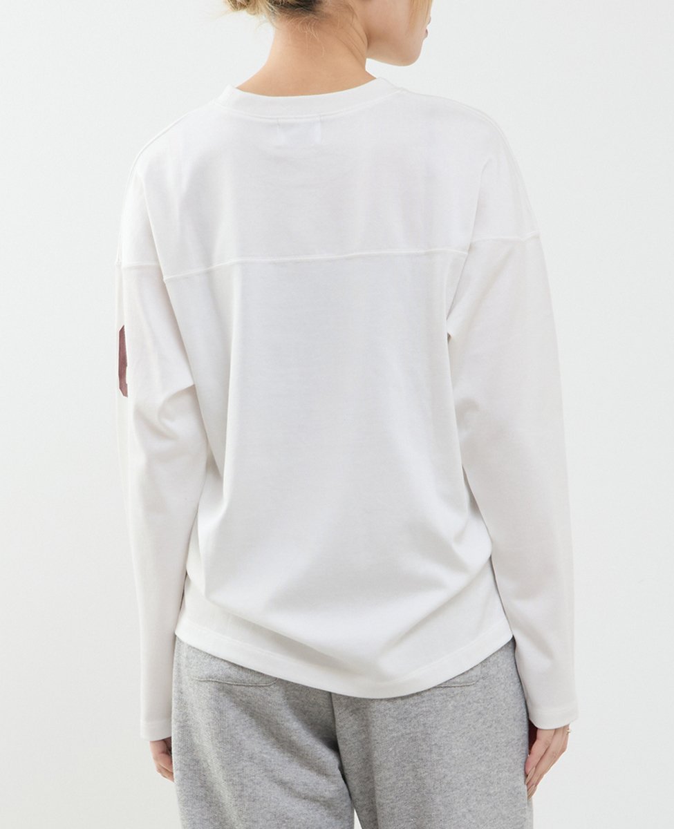 Длинная футболка, которую легко носить и отдельно, с винтажным оттенком.