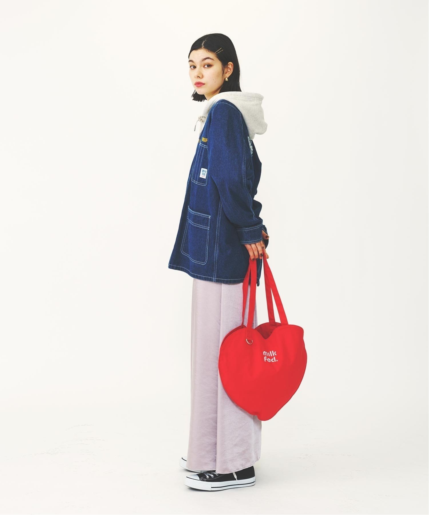 Прекрасная сумка-тоут с логотипом MILKFED. в виде сердца. Эта симпатичная сумка украшена большим сердцем, что делает ее отличным дополнением к любому стилю. Легкий материал также делает ее отличной дополнительной сумкой! Имеет внутренний карман и D-образное кольцо на ручке. Характеристики: Внутри: 1 разделительный карман. Ширина ручки: 2,5 см. В комплекте D-образное кольцо. [MILKFED.] [Уведомление о пополнении запасов]
