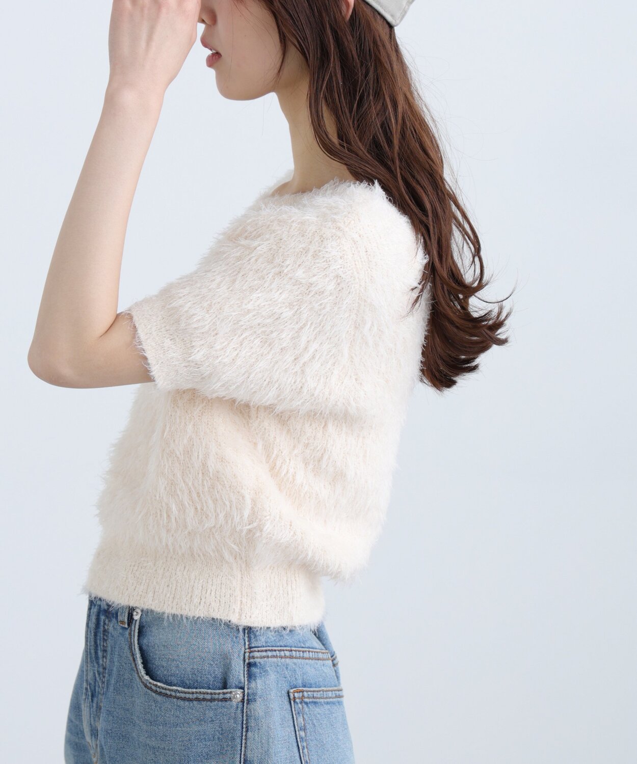 Милый, мягкий и удобный трикотажный кардиган с короткими рукавами из пушистого ворсистого материала. Его можно носить как спереди, так и сзади, создавая V-образный или круглый вырез. Компактный силуэт позволяет сочетать его с любыми брюками и юбками, включая мини-юбки и широкие брюки. Также рекомендуется использовать в качестве нижнего слоя под куртку. Подходит для самых разных стилей, от повседневного до элегантного.