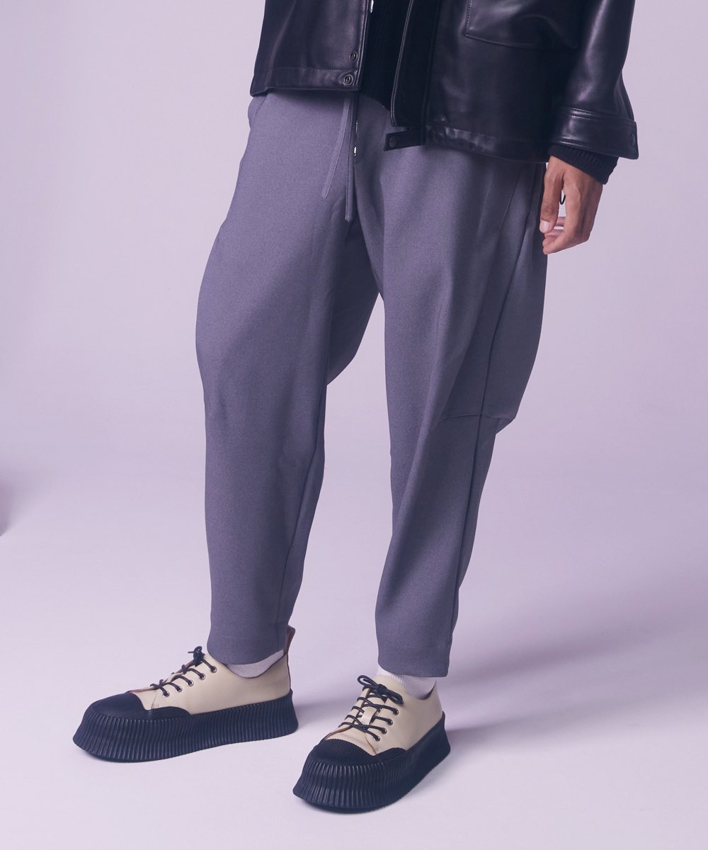 Глубокая посадка и свободный крой в области бедер и ягодиц в сочетании с зауженным силуэтом, слегка сужающимся ниже колен, создают в целом аккуратный образ.