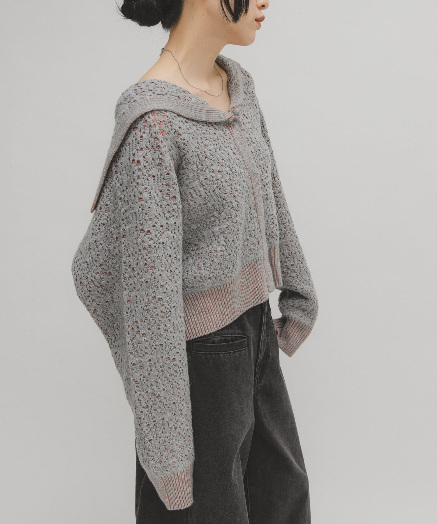 Этот кардиган украшен трехмерным жаккардовым узором, который привлекает внимание. Благодаря силуэту, напоминающему блузон, и воротнику в матросском стиле, он выглядит безупречно со всех сторон. V-образный вырез спереди позволяет носить его поверх футболки или топа с высоким воротником.