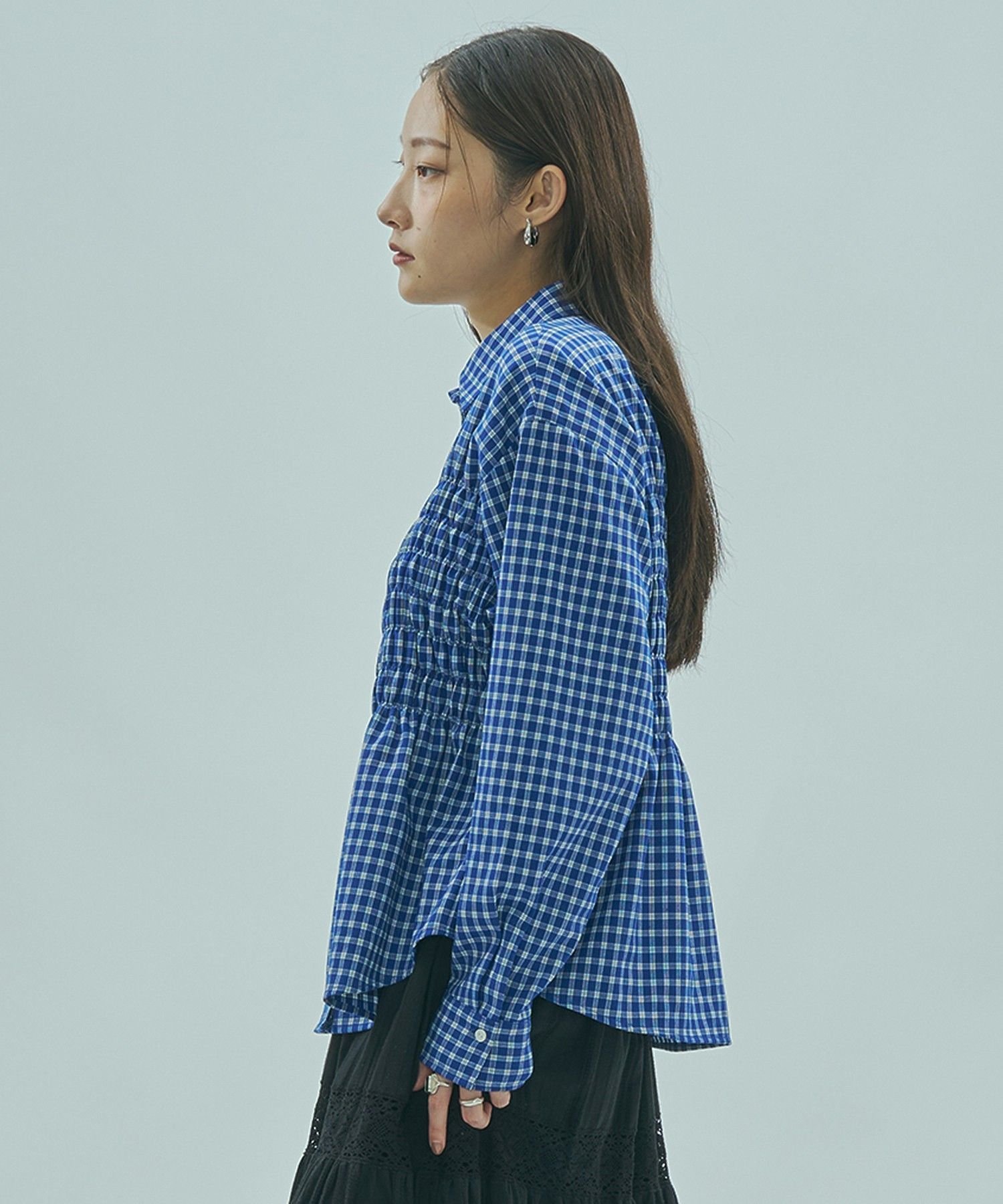 Клетчатая рубашка со сборками, создающая привлекательный, четко очерченный силуэт.