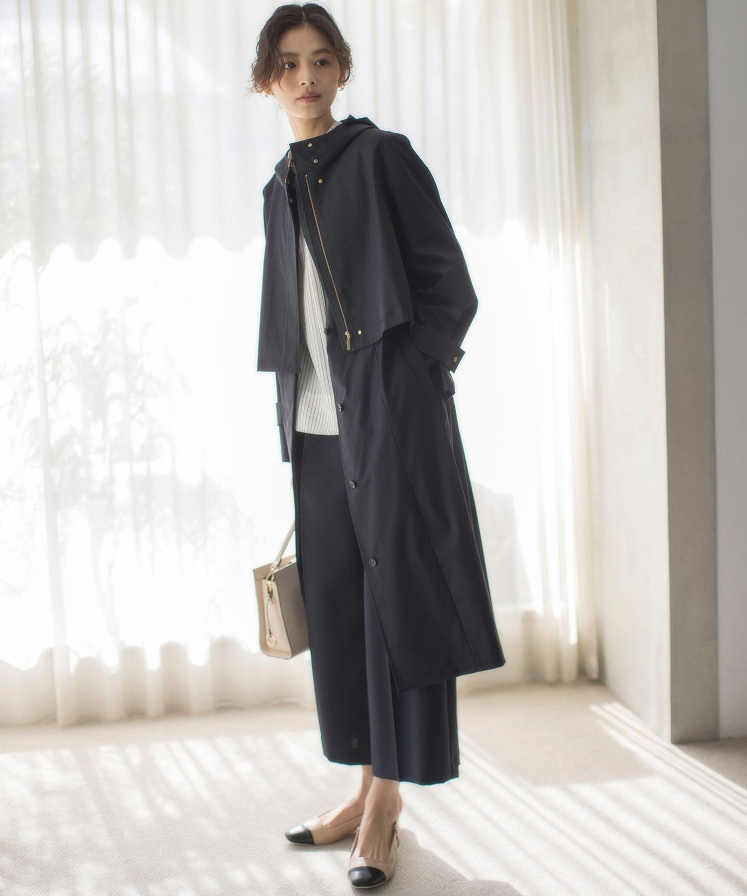 Этот комплект верхней одежды, состоящий из жилета и укороченной куртки, можно носить тремя способами. Его изысканный силуэт и дизайн, адаптирующийся к перепадам температуры, очень привлекательны. Дизайн: 3 способа ношения! Это удобная вещь для повседневной носки, а также для путешествий и деловых поездок. 1. Наденьте длинный жилет с укороченной курткой, чтобы создать длинное пальто. 2. Носите укороченную куртку с капюшоном отдельно для создания изысканного, элегантного повседневного образа. Слегка свободный силуэт с удлиненной спинкой и модной укороченной длиной создают утонченный образ. Складки на спине добавляют объем, что делает его идеальным сочетанием с широкими брюками и длинными юбками. Рукава достаточно широкие, чтобы носить их с свободной внутренней одеждой, но манжеты можно затянуть с помощью застежек для свободы движений и женственного вида. 3. Длинный жилет имеет простой дизайн с застежкой на пуговицы и потайной планкой, что позволяет создавать разнообразные образы, надевая его поверх трикотажа, длинной футболки или блузки. Сборки на талии сзади создают лаконичный вид даже в расстегнутом виде. Мы также рекомендуем носить его со всеми застегнутыми пуговицами и затянутым поясом для создания образа юбки-свитера. Жилет также имеет удобный карман.