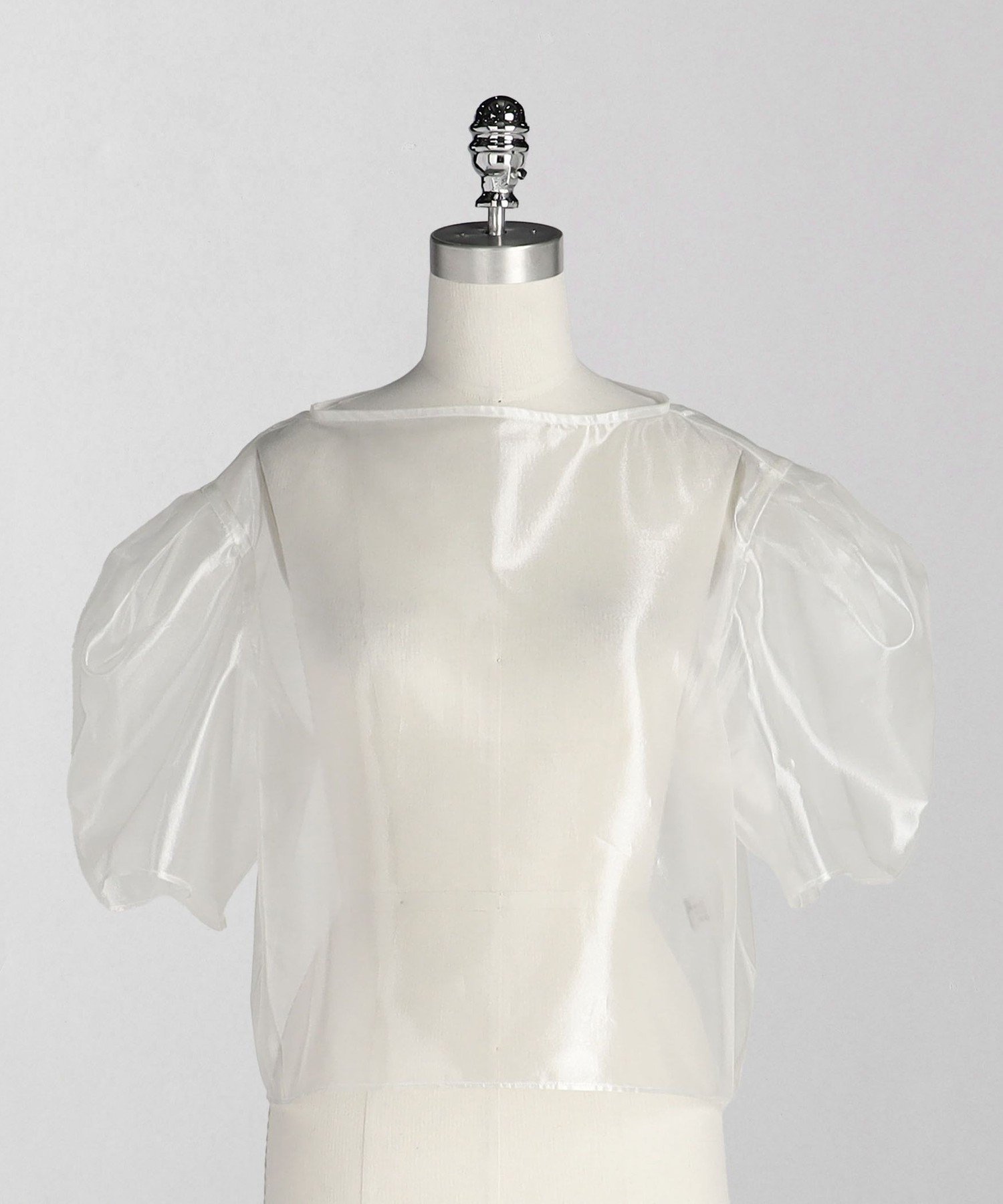 Блузка с блестящей полупрозрачной текстурой и трехмерным силуэтом, создающая гламурный образ.