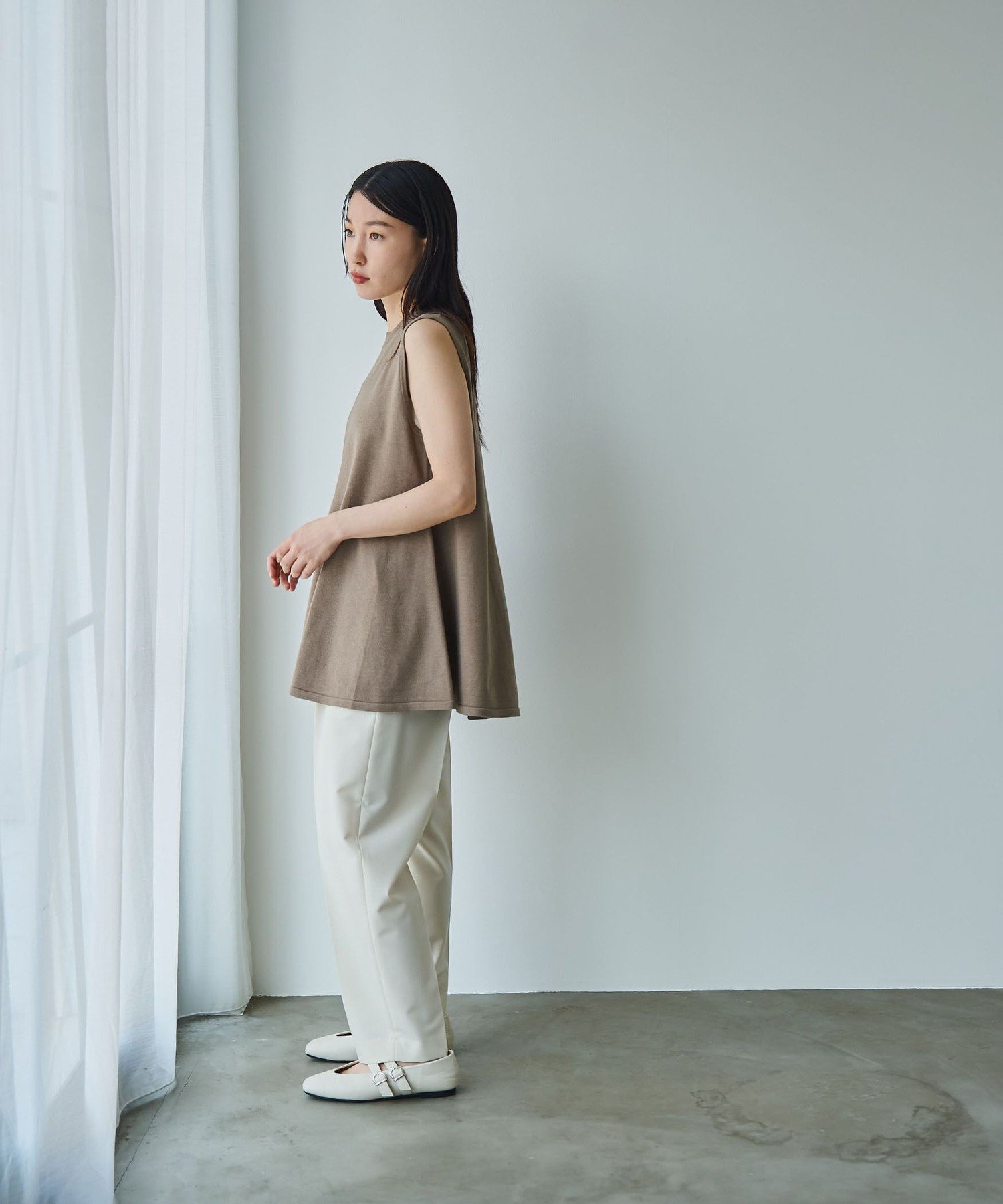 Вязаный топ без рукавов, создающий осеннее настроение.