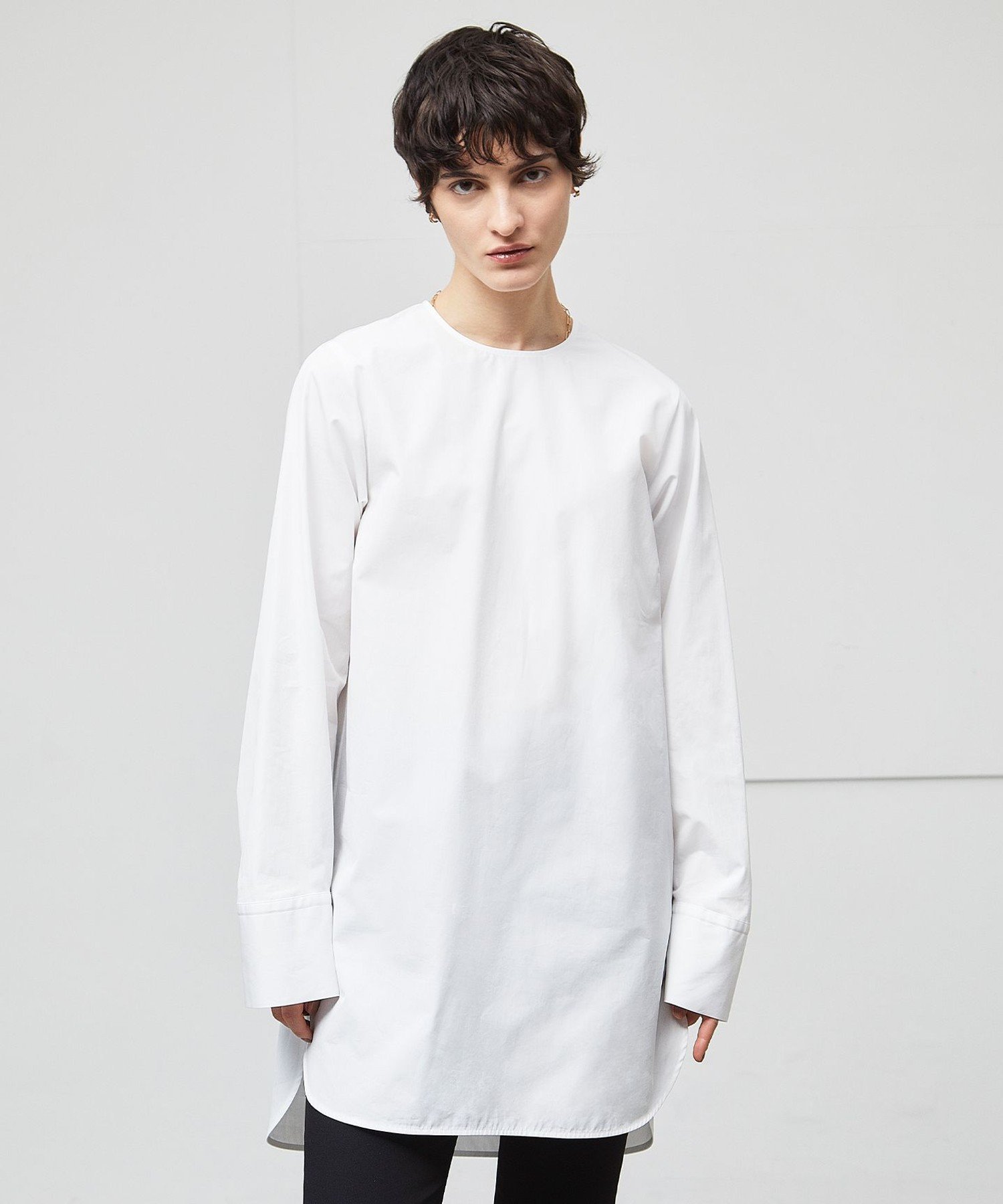 Эта блузка с круглым вырезом имеет универсальный дизайн, который органично вписывается в любой образ, будь то в сочетании с брюками, например, футболкой, или в сочетании с трикотажным свитером или жакетом. Изготовленная из 100% хлопка, эта универсальная вещь благодаря своей простоте является вневременной.