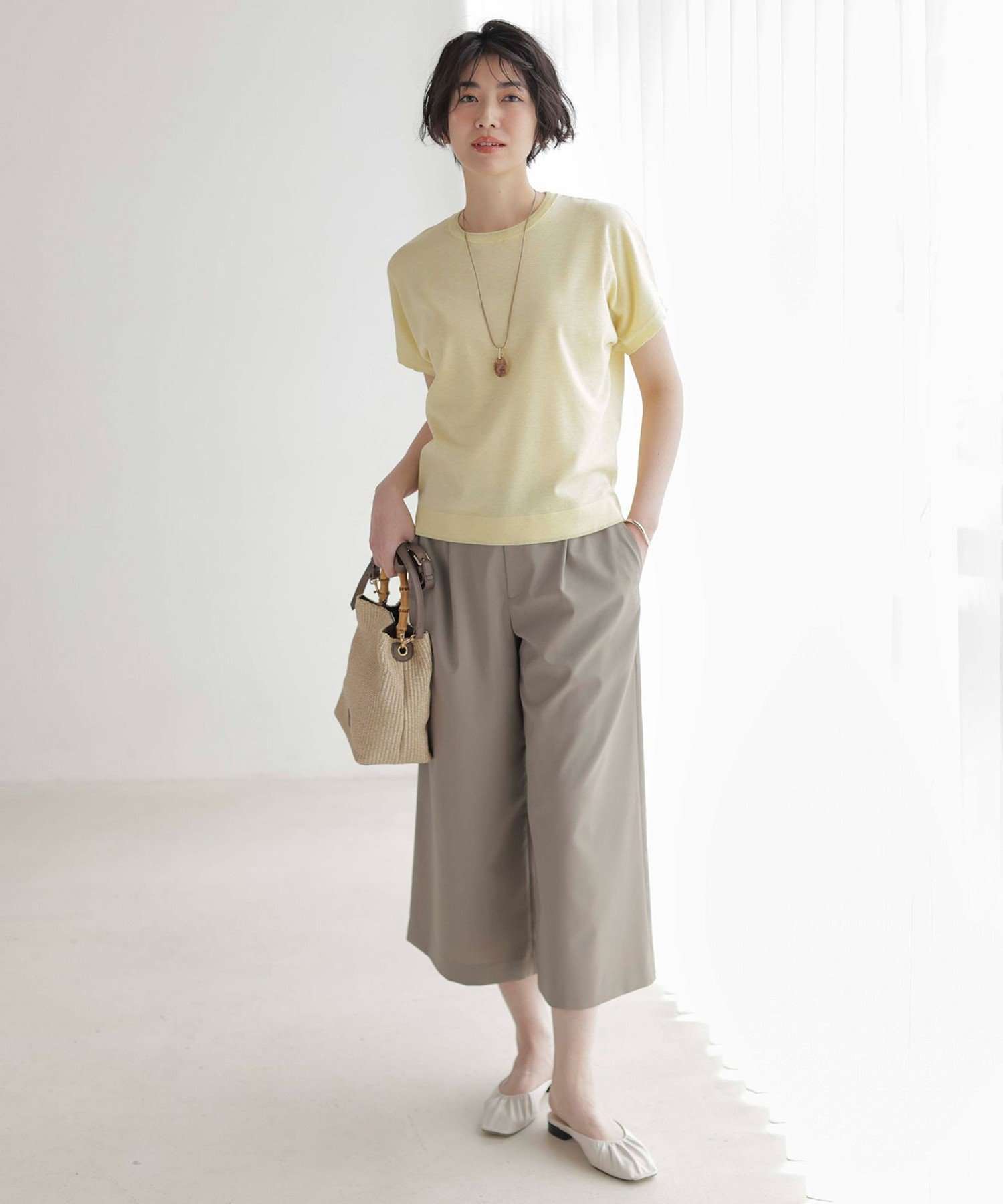 Материал: Изготовлен из смеси тонких вискозных и полиэстерных нитей. Мягкая, гладкая текстура и приятная драпировка создают утонченное впечатление с легким блеском. Универсальный материал делает его подходящим как для работы, так и для отдыха. Изделия из того же материала: Вязаный кардиган (KRGJGM0510) Большой размер (KRGTGM0510) Маленький размер (KRG0GM0510) Вязаный кардиган в полоску (KRGJGM0512) Большой размер (KRGTGM0512) Маленький размер (KRG0GM0512) *Размер L доступен только в рамках обычной распродажи. *Изображения товаров являются образцами, поэтому обратите внимание, что характеристики, такие как цвет и размер, могут быть изменены. Модель: H170 B81 W59 H85