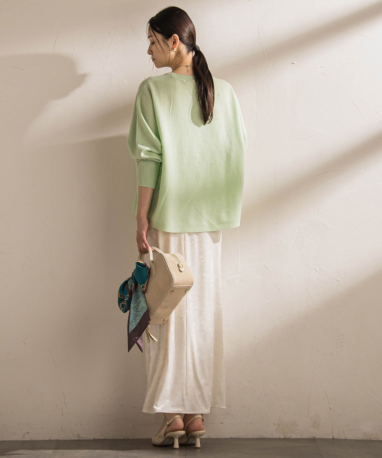 Свободные рукава-летучая мышь придают этому трикотажному изделию естественный, непринужденный вид и женственный, сдержанный образ.