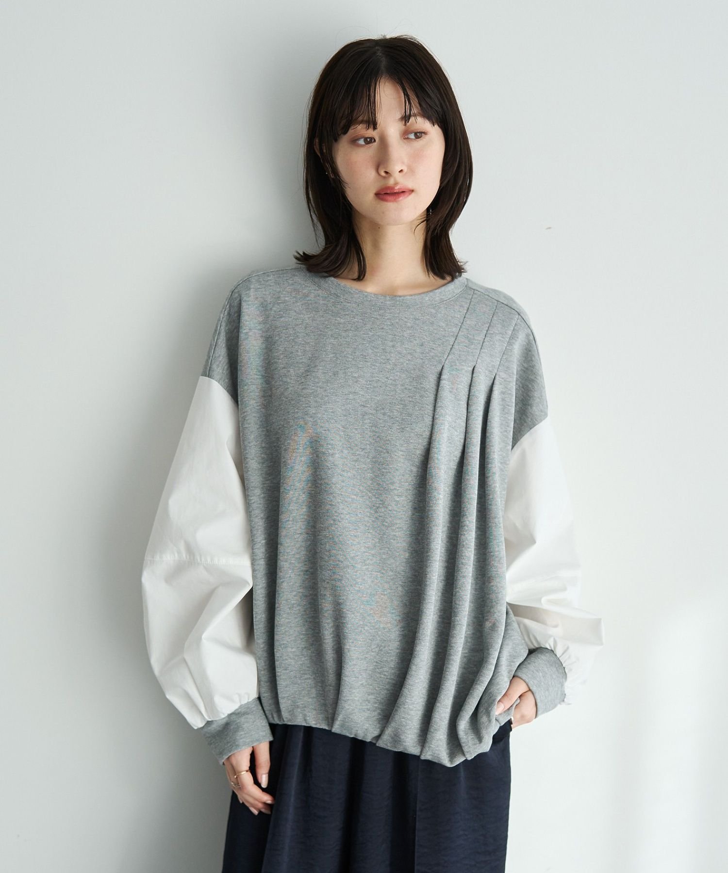Этот пуловер имеет складку с одной стороны, создавая асимметричный дизайн.