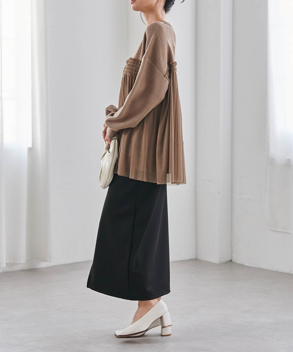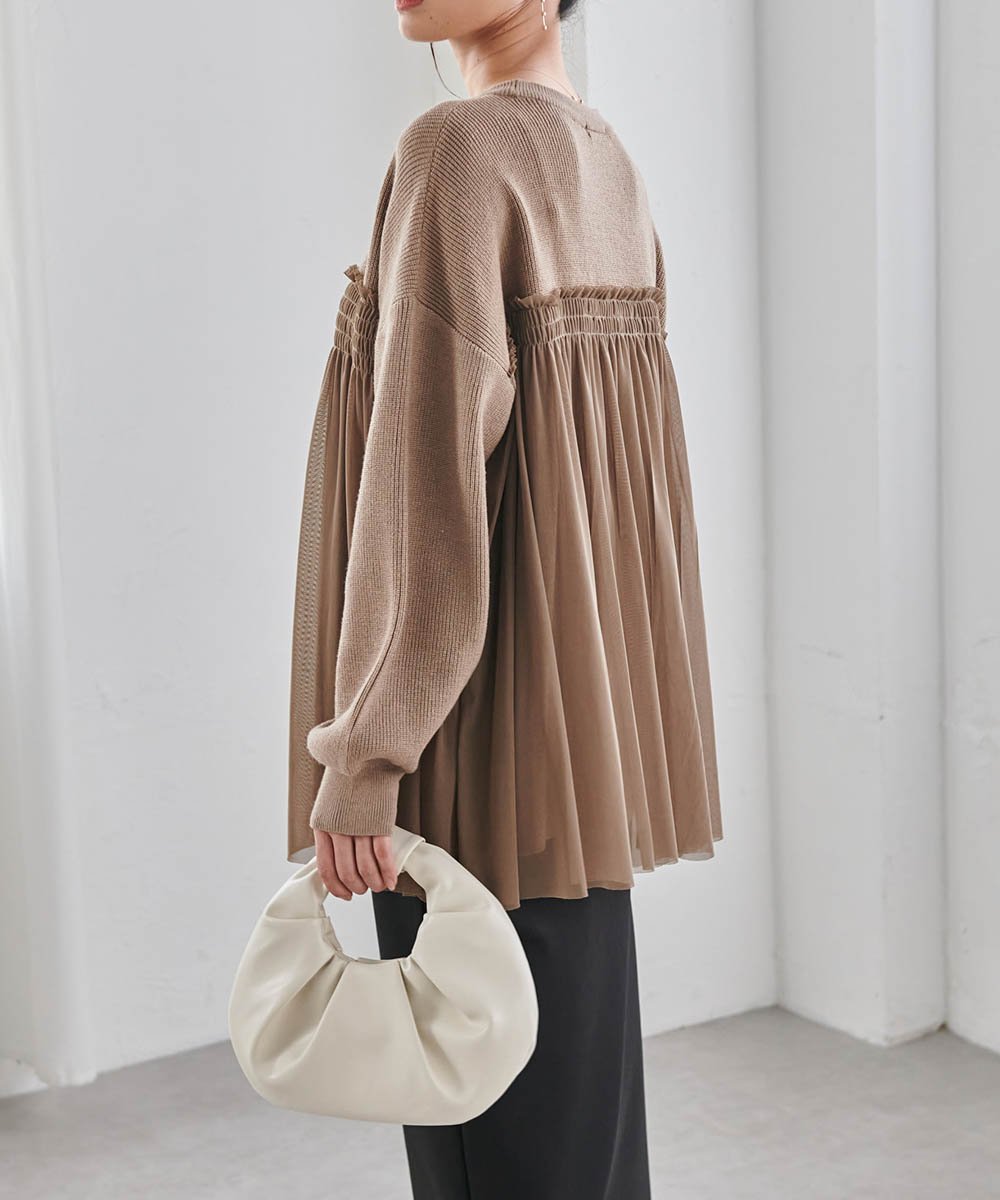 - Пуловер из тюля, пришитого к трикотажу в стиле бюстье.