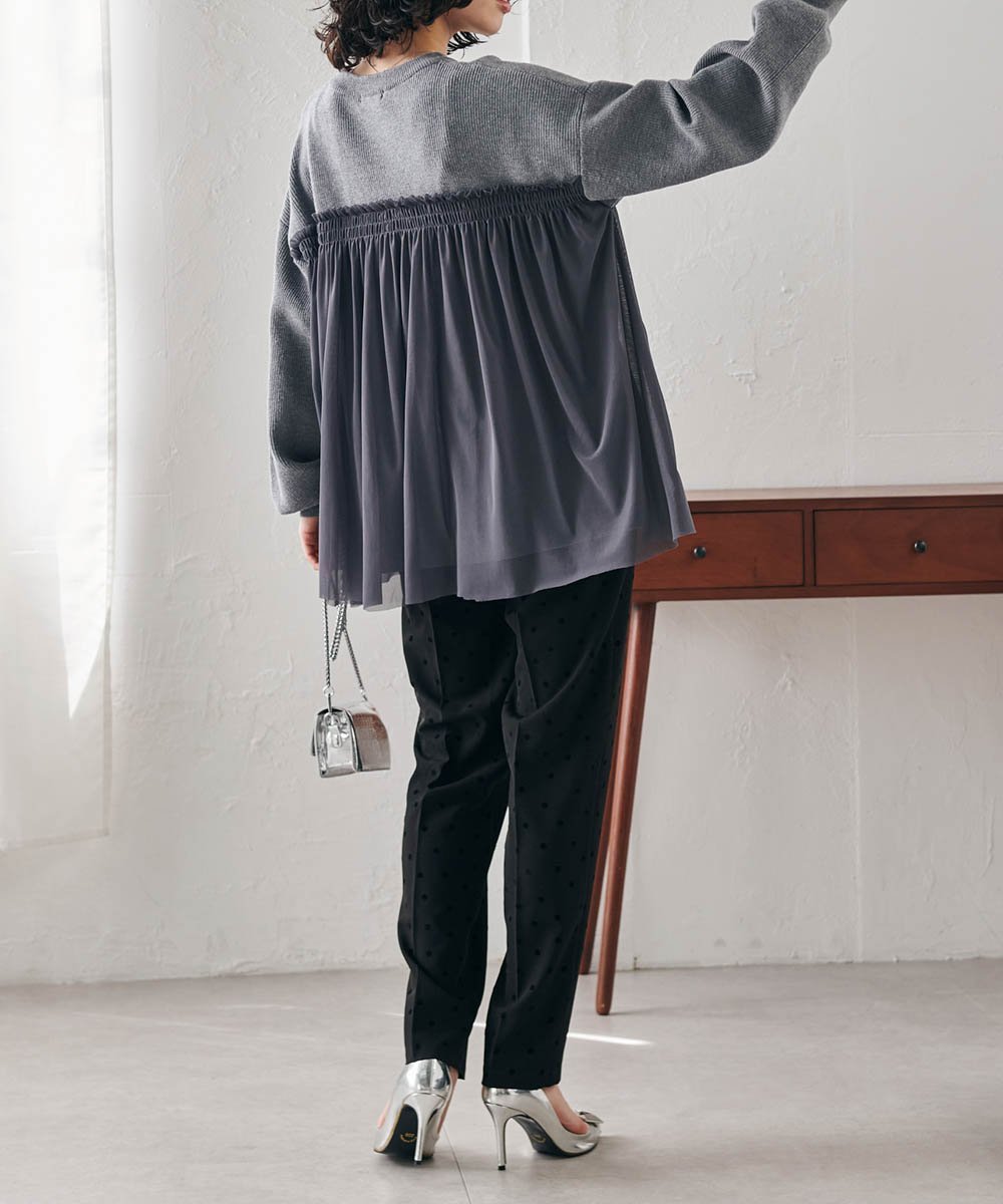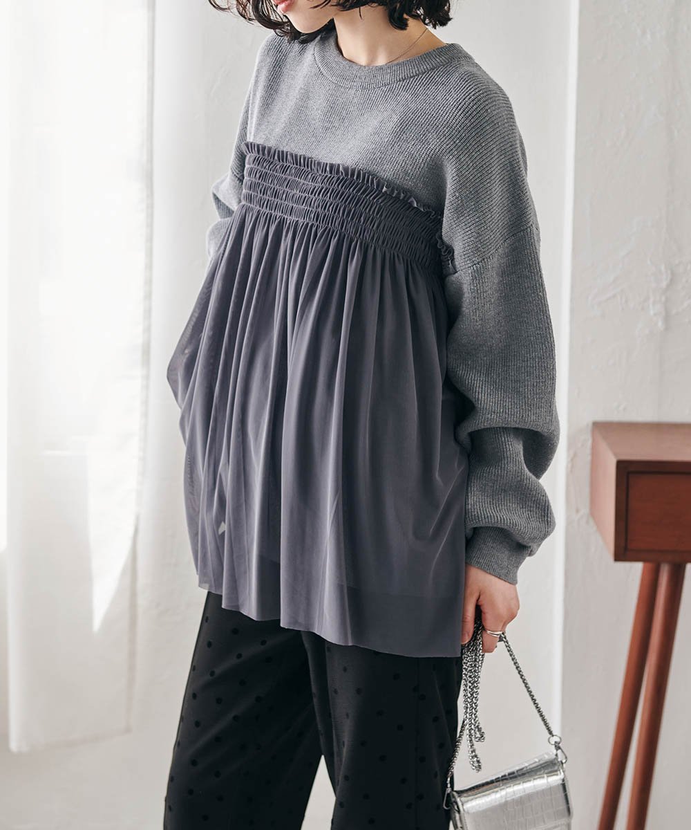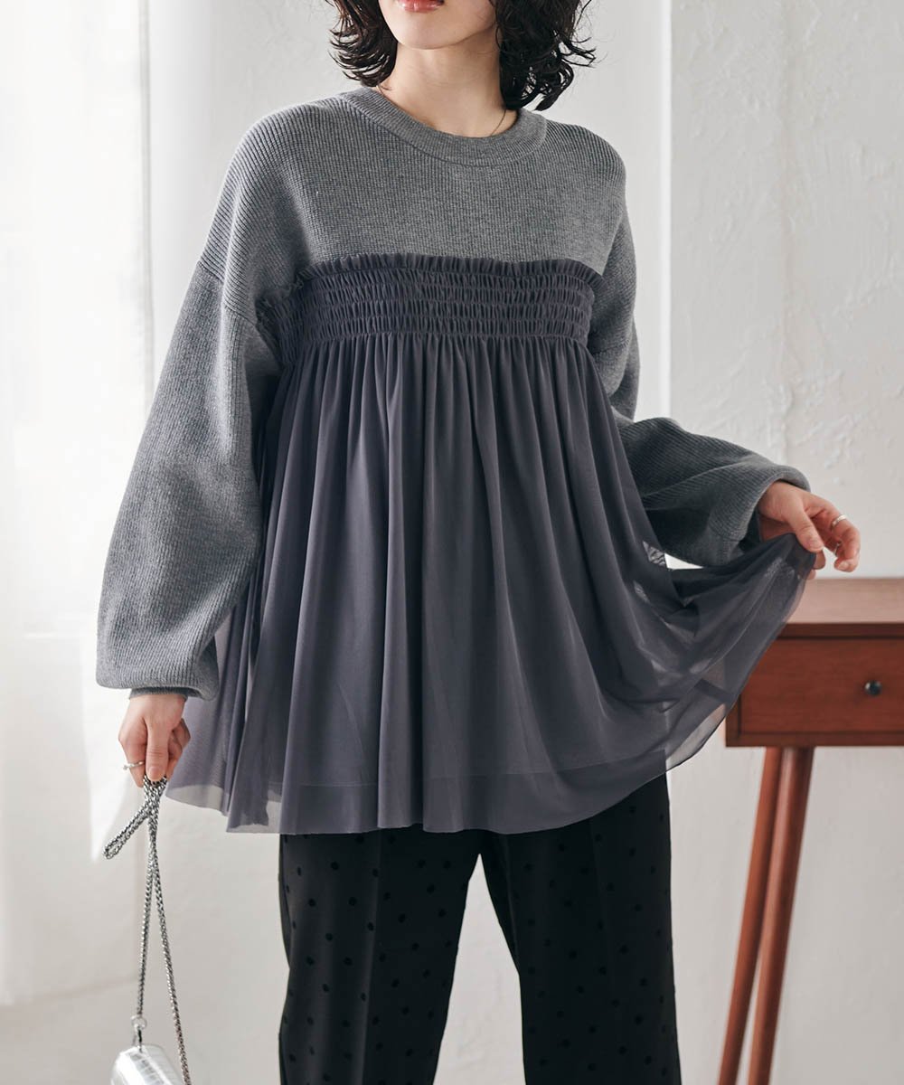 - Трикотаж с милым, взрослым дизайном, где тюль привлекает внимание.