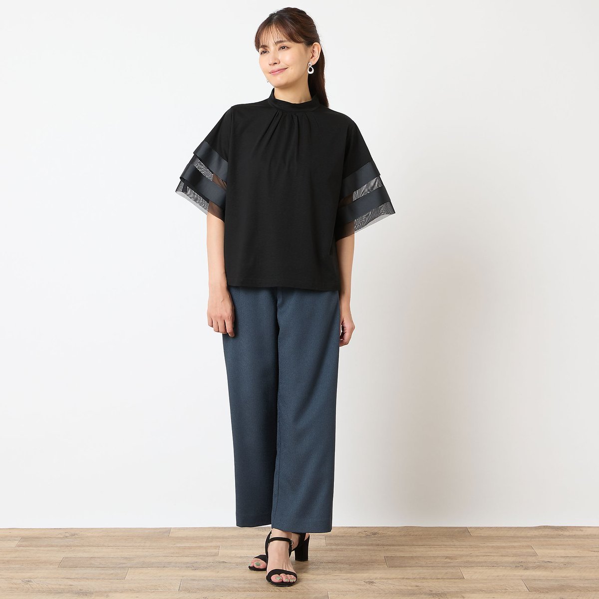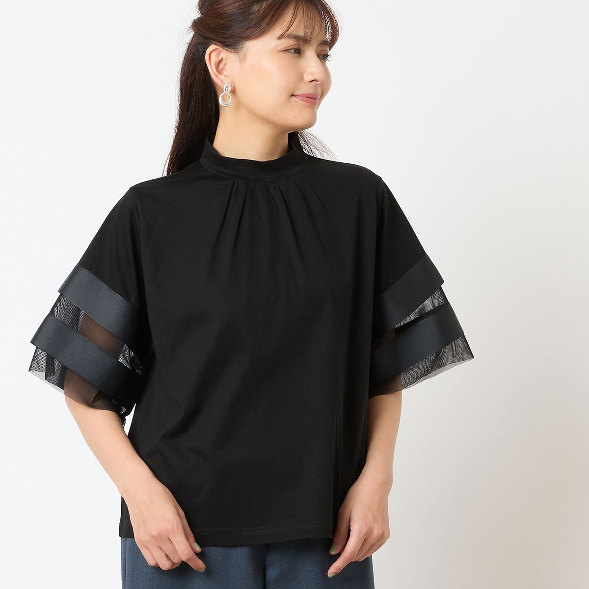 Элегантная прозрачность и расклешенные рукава обеспечивают прекрасное прикрытие для верхней части рук.