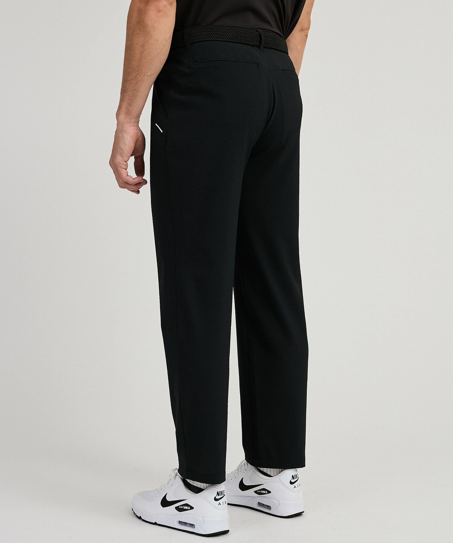 Эти брюки полной длины изготовлены из ткани сирсакер, которая имеет текстурированную поверхность, приятна на ощупь и эластична.