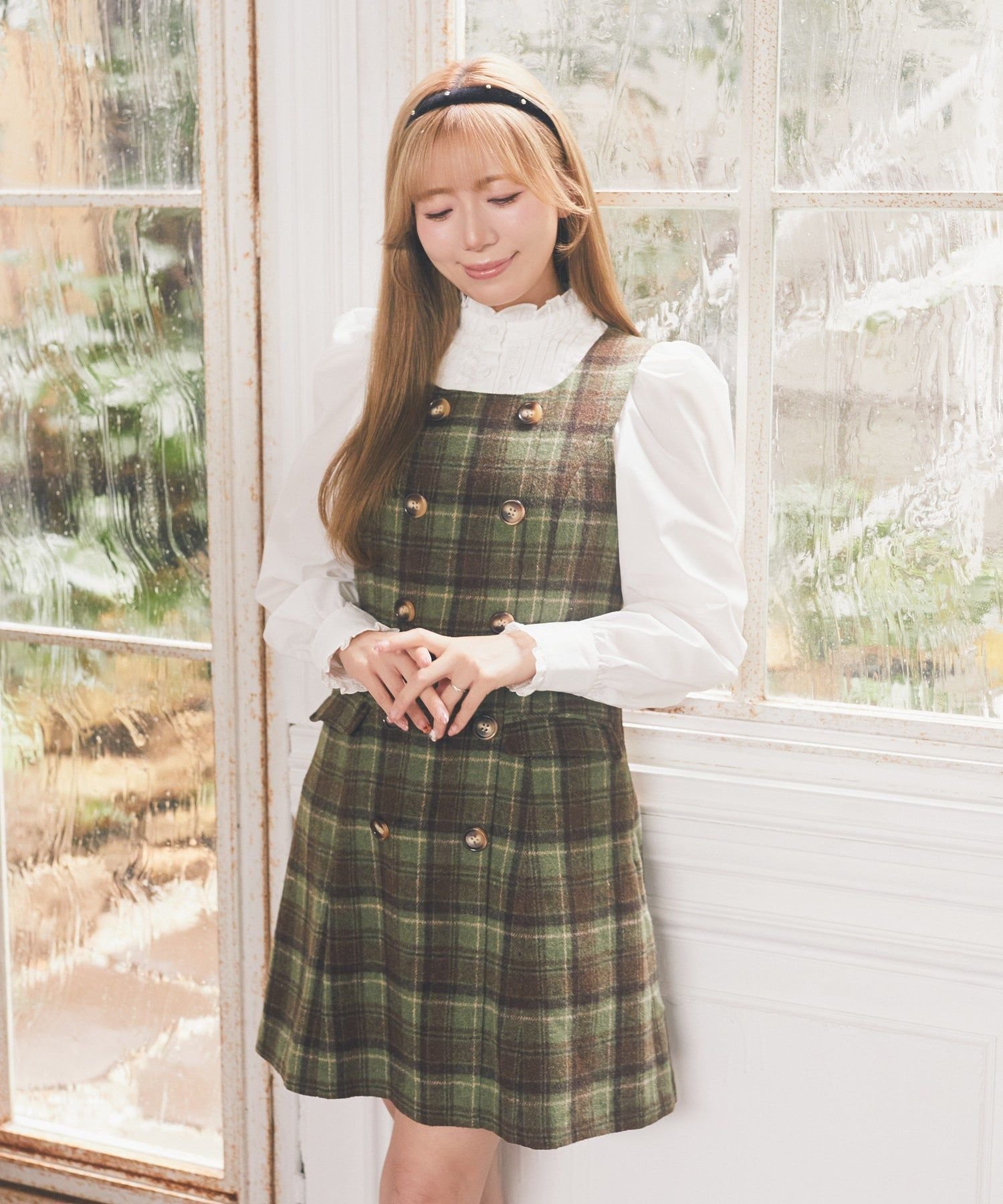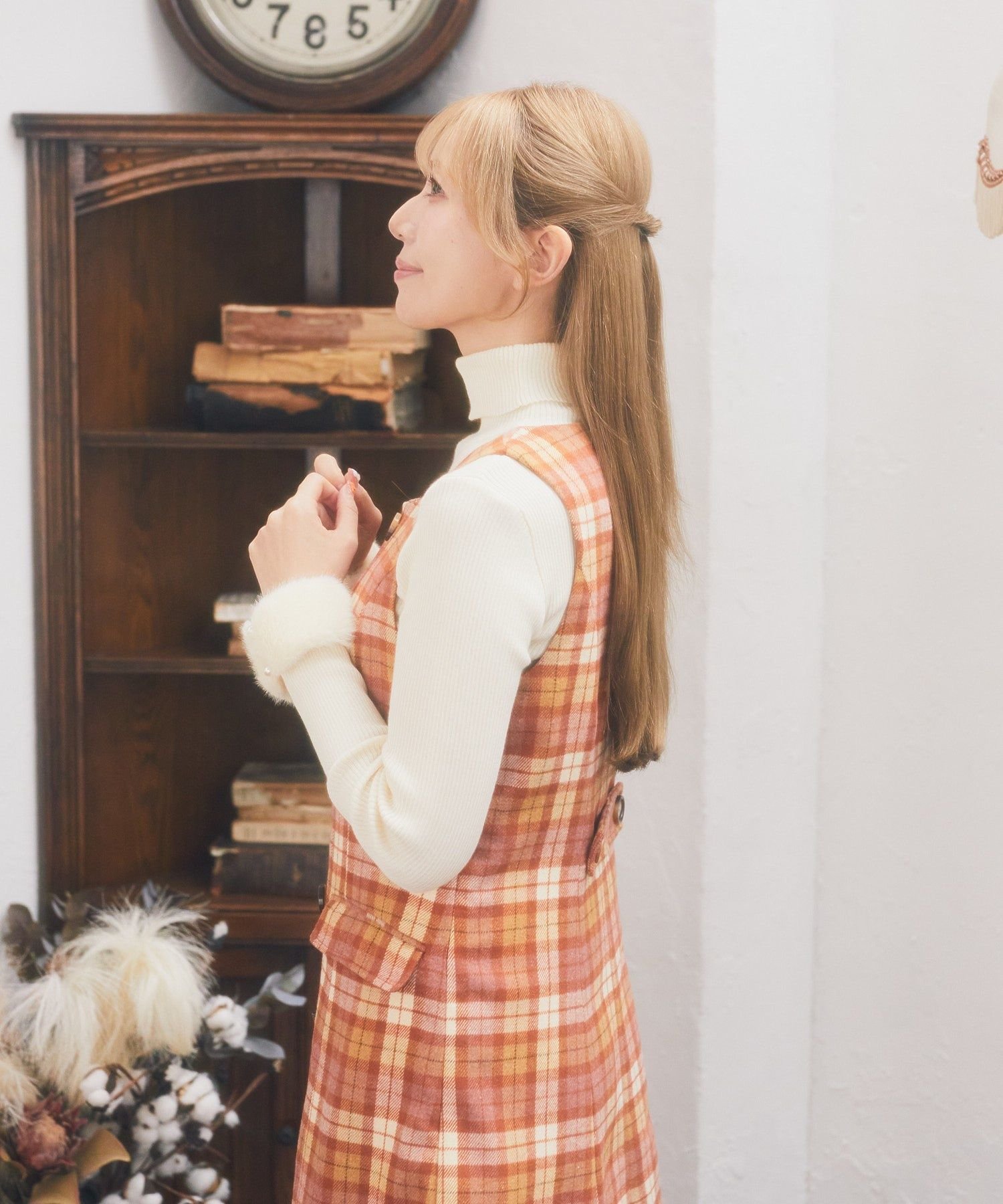 Эта юбка-свитер сшита из мягкой клетчатой ткани, что придает ей ретро-стиль.