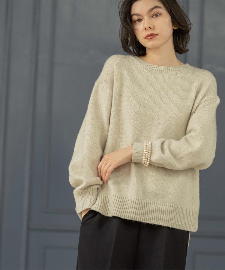 Вязаный пуловер с простым круглым вырезом и свободным силуэтом.