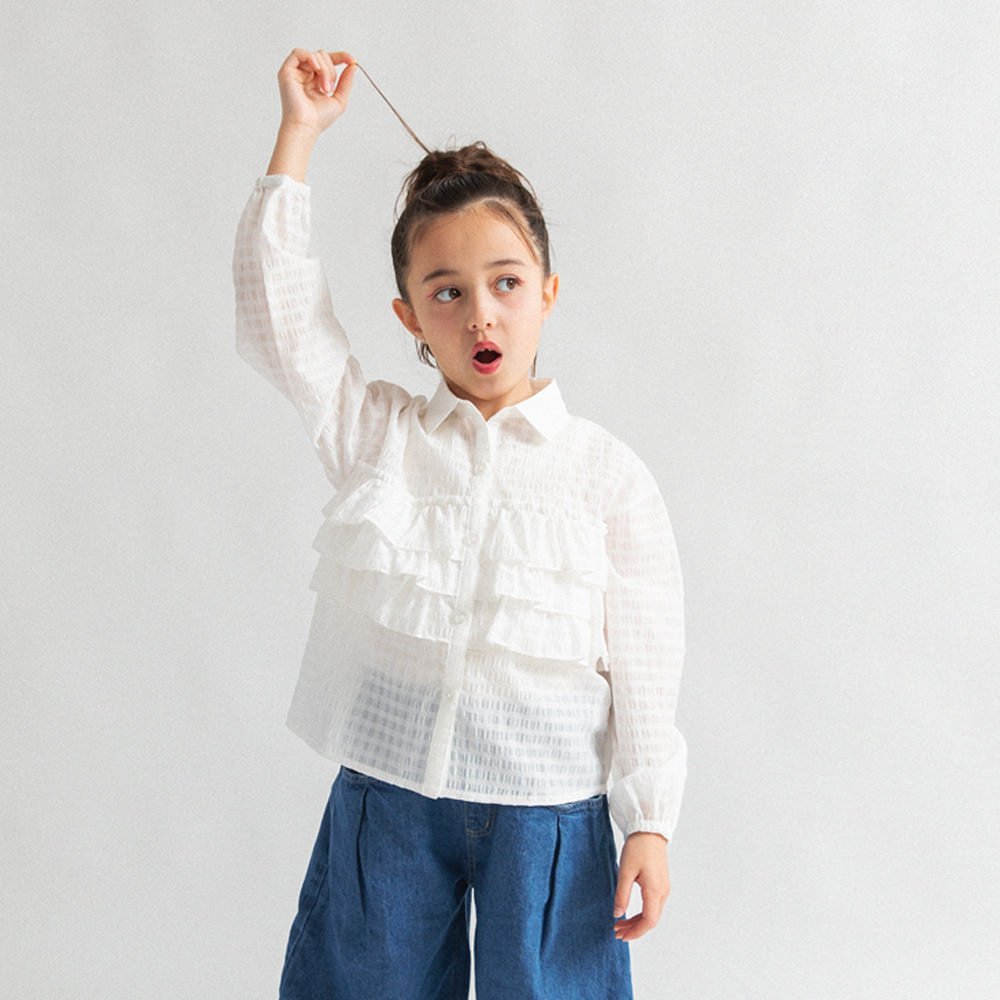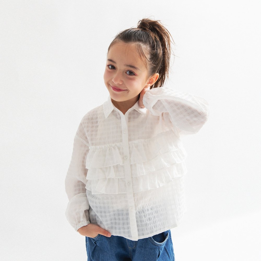 Блузка с оборками и привлекательным прозрачным клетчатым узором