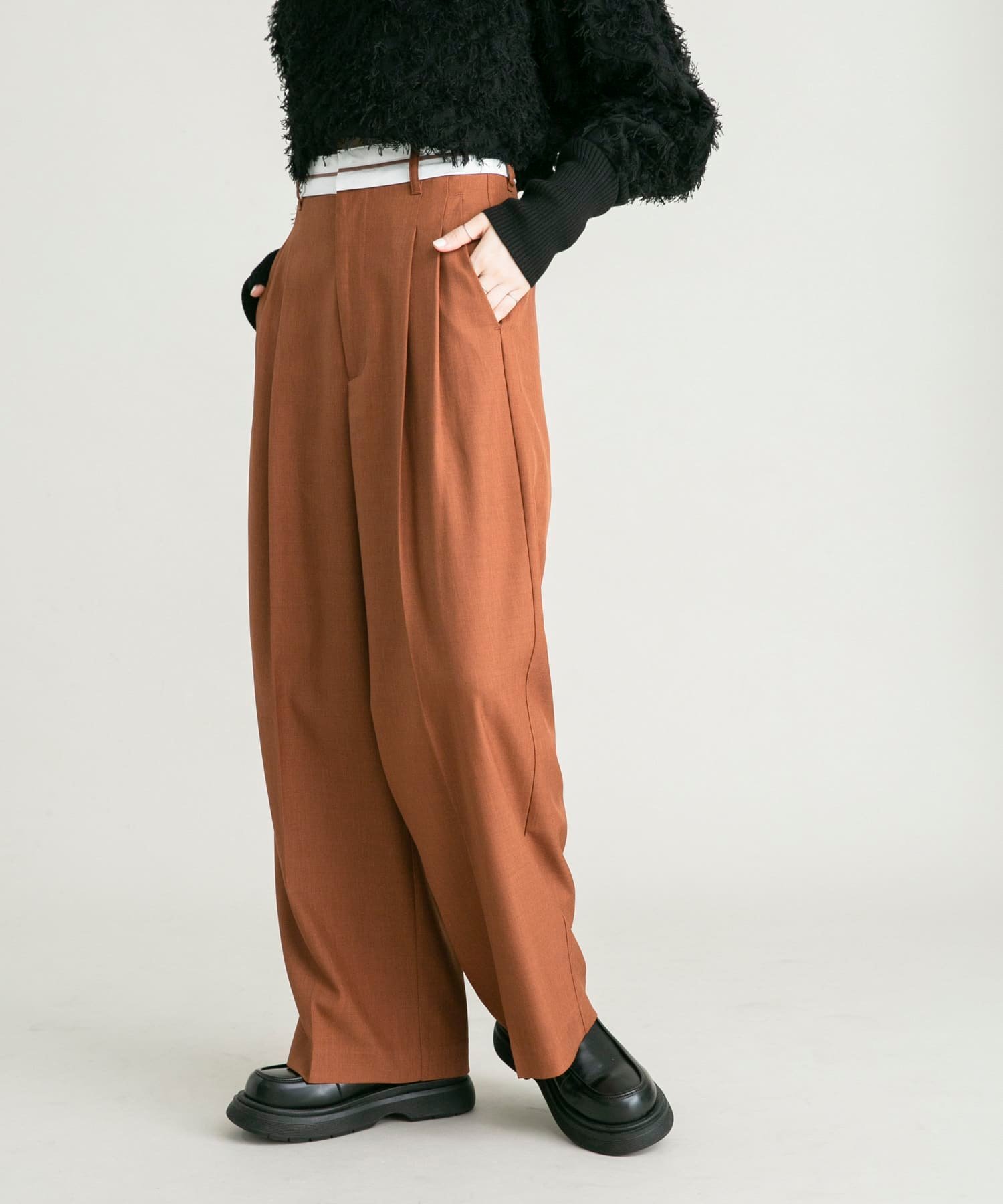 Брюки с поясом Mar, дебютировавшие в начале осени, вернулись в новом цвете! Эти брюки украшены модным поясом Mar для создания смелого и эффектного образа. Высокая талия и центральная складка создают стройный силуэт с длинными ногами, что делает их популярным выбором. Доступны два размера для разного роста.