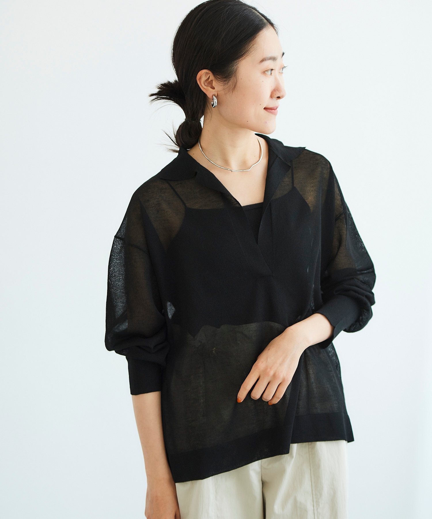Это полупрозрачное трикотажное изделие можно сочетать с различным нижним бельем. Длинные манжеты имеют эластичную нить в резинке, поэтому вы можете подвернуть их, чтобы отрегулировать объем рукавов.