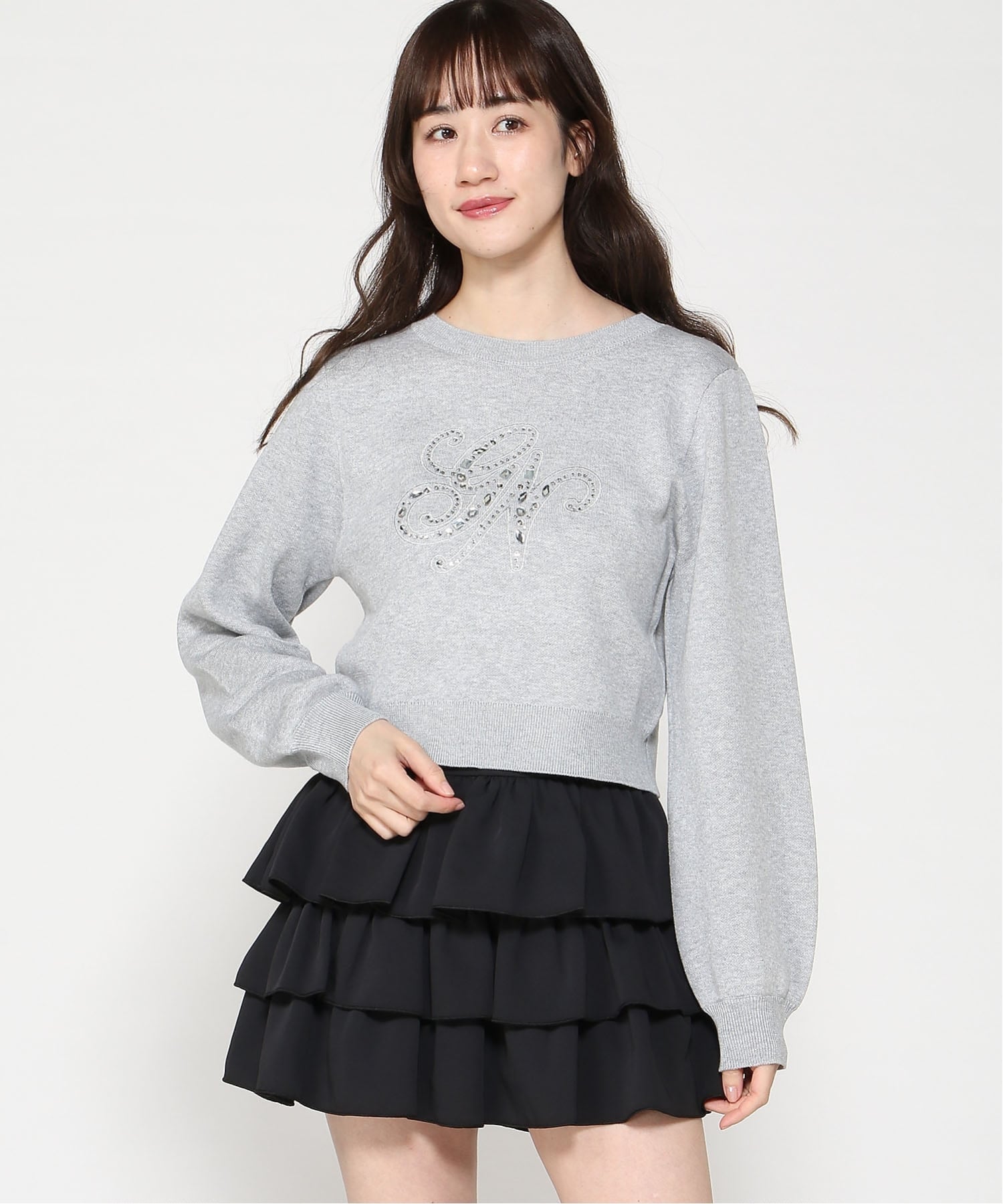 Этот вязаный топ украшен крупным вышитым логотипом в виде инициалов на передней части, что создает яркий акцент.