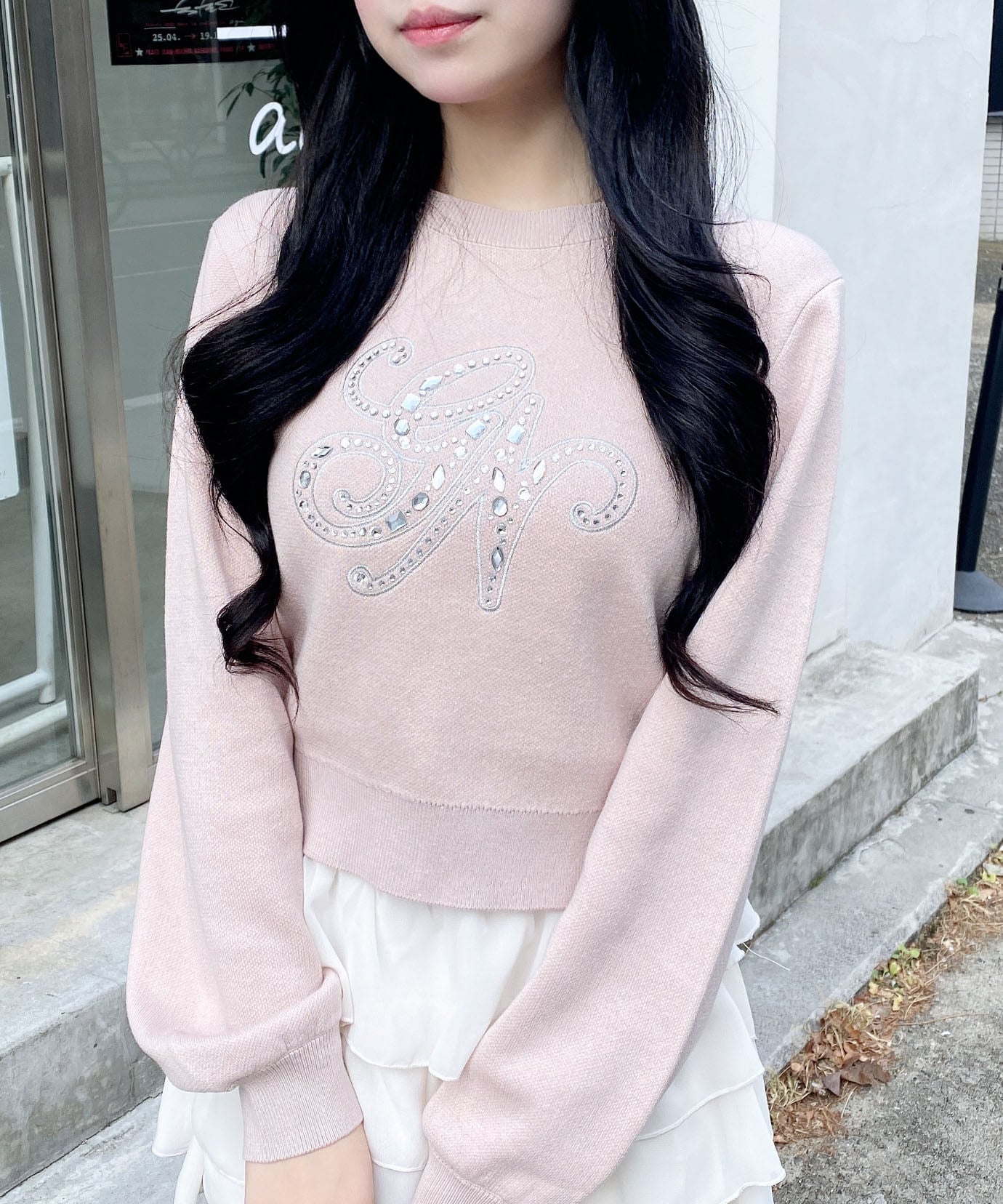 Милый вязаный топ с крупной вышивкой и сверкающими стразами♡