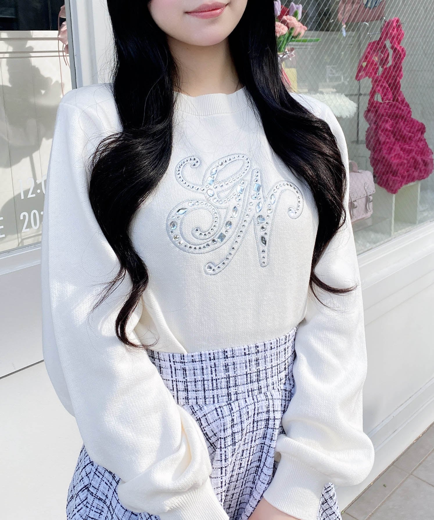 Милый вязаный топ с крупной вышивкой и сверкающими стразами♡