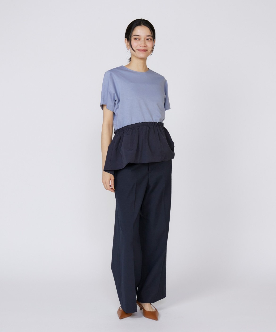 Этот пуловер имеет простой силуэт и баску из легкого, плотного материала. Баска, расширяющаяся от талии, создает элегантный, гламурный и женственный образ. Пояс создает обтекаемый силуэт, а универсальный дизайн обеспечивает достаточную защиту до самых бедер. Французские рукава закрывают верхнюю часть рук и добавляют женственности и непринужденности.