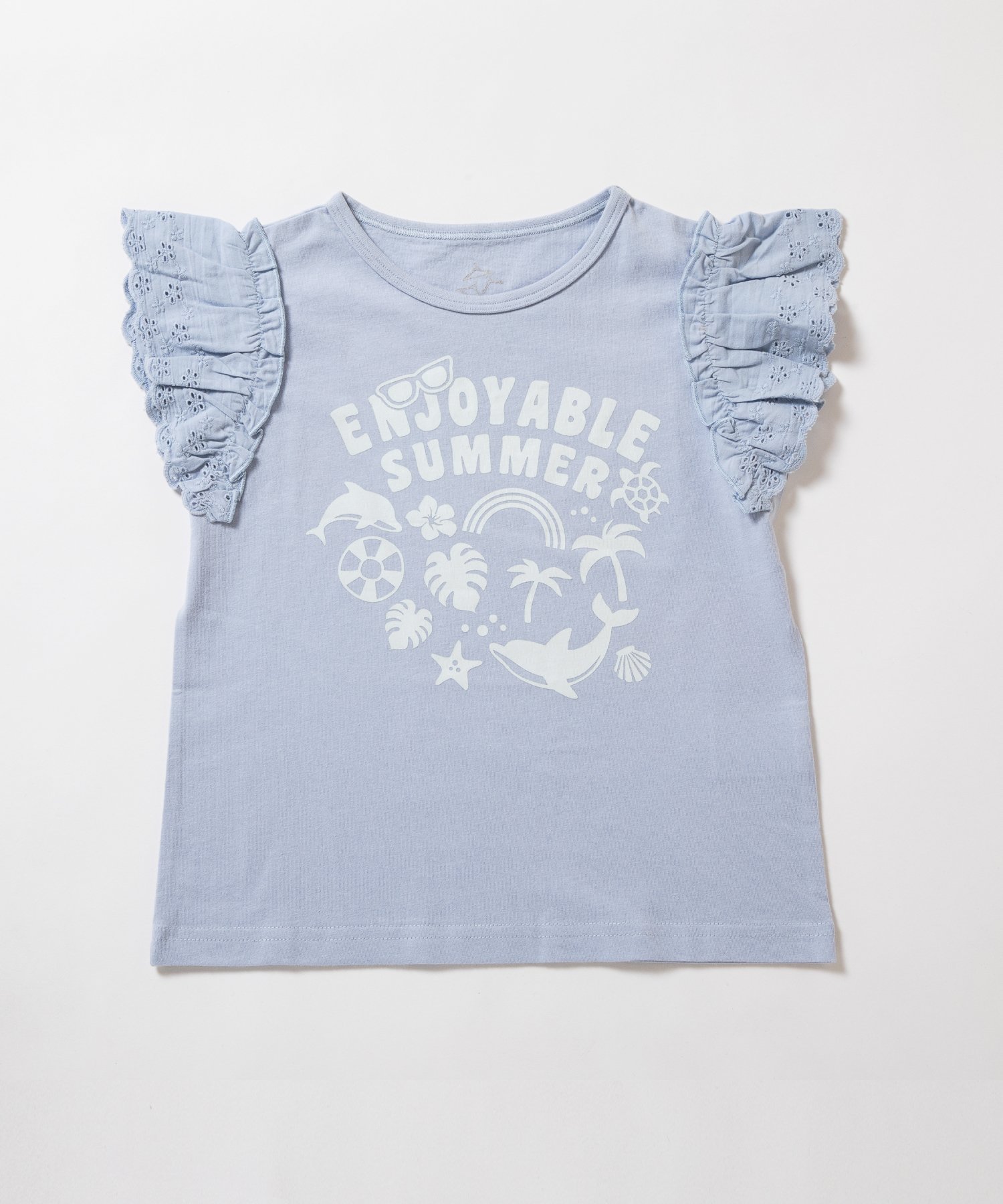 ДизайнМягкий, объемный и милый♪ Эта очаровательная вещь с хлопковым кружевом подчеркнет вашу женственность.Освежающий рисунок на передней части создает летнее настроение.Отличная вещь, которую можно сочетать с разными брюками и юбками для спортивного или девичьего образа.
