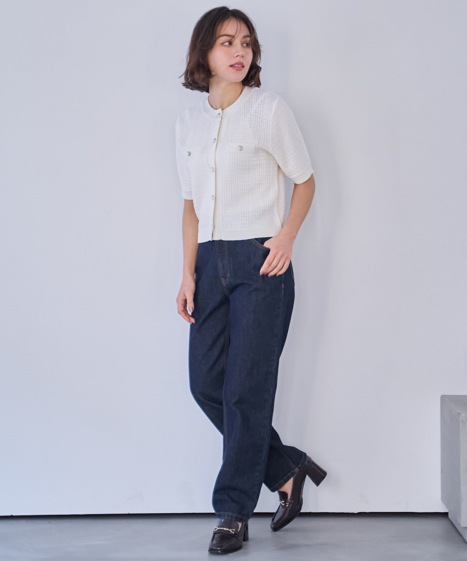 Джинсовые брюки с чистым, прямым силуэтом.