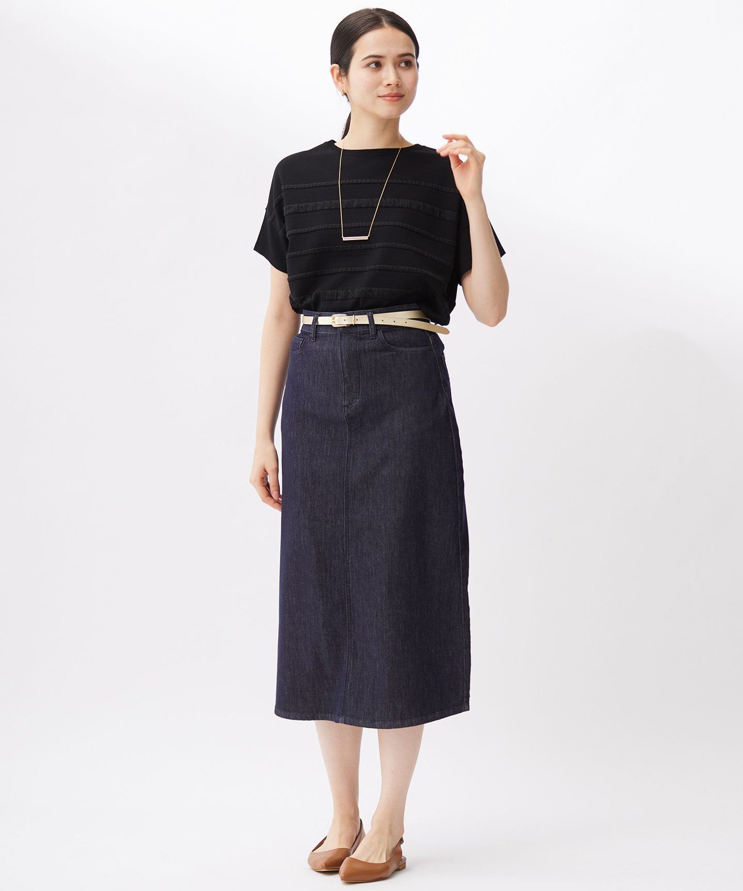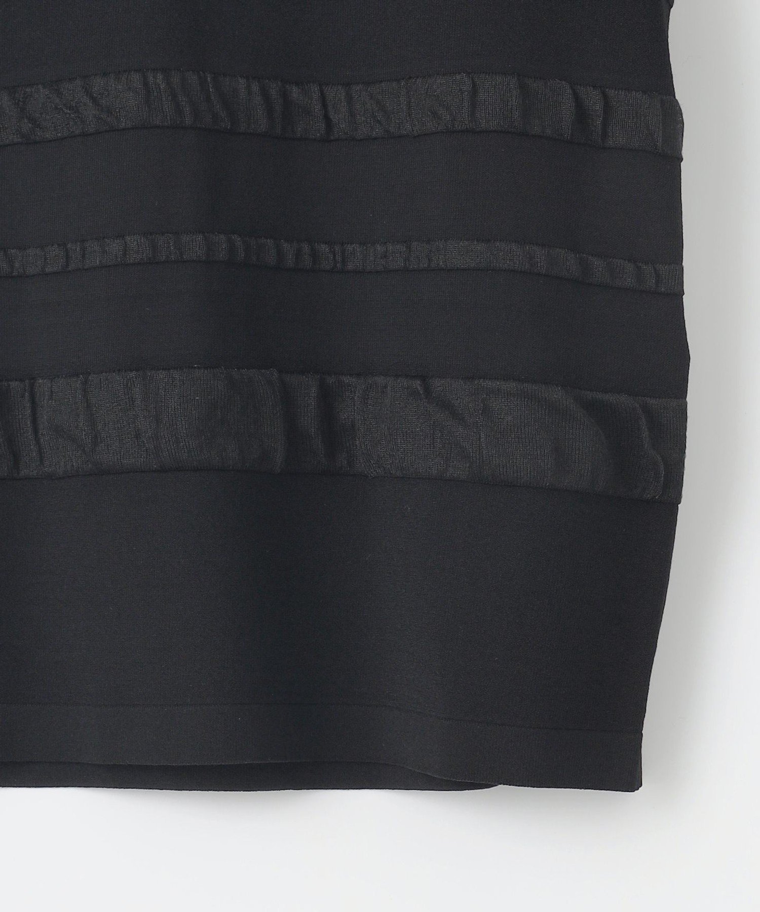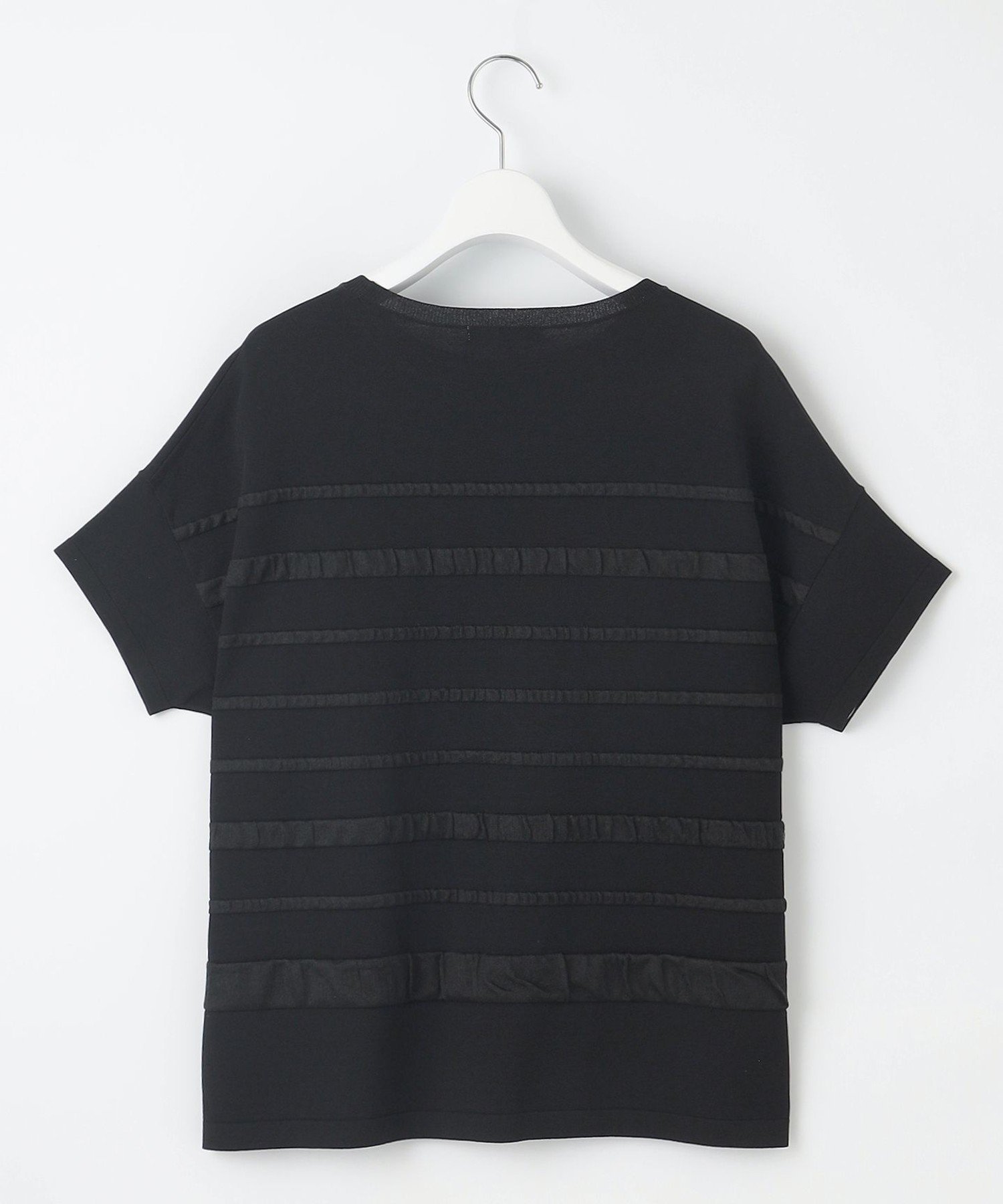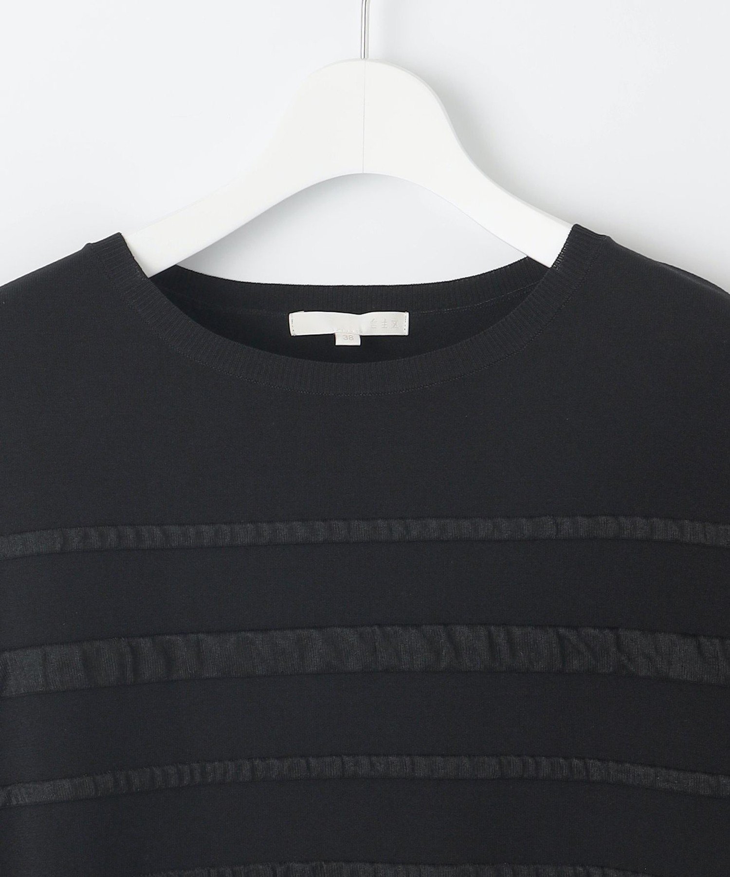 Трехмерный полосатый трикотаж из прозрачного материала. Дизайн: Этот трикотаж имеет трехмерный дизайн, созданный путем сочетания прозрачных материалов в полосатом узоре. Размер, как у футболки, позволяет носить его как самостоятельно, так и с юбками и брюками. Материал: Изготовлен из скрученной пряжи из вискозы и эластичного полиэстера. Эластичная конструкция обеспечивает свободу движений и комфортную посадку, облегая тело для отсутствия напряжения. Плотно скрученная пряжа создает крепоподобную поверхность, придавая ткани сухость, свежесть и освежающую прохладу, а также обеспечивая элегантную драпировку. Также обладает охлаждающими свойствами и защитой от УФ-излучения. Тот же материал: Трикотаж-пуловер (KRWRCM0452)
