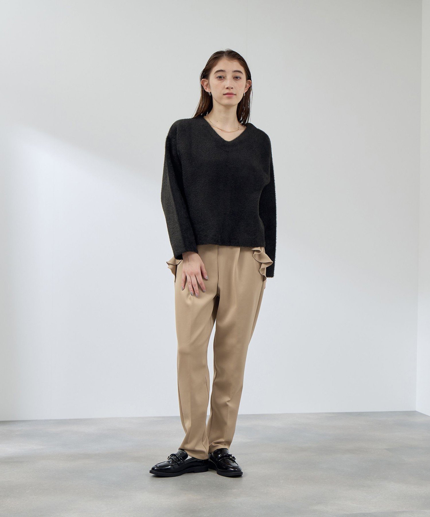 ※Цвет может выглядеть по-разному в зависимости от условий съемки и освещения. Похожие слова: QUEENSCOURT Queen's Court Женский новый женский взрослый наряд Осень/Зима 2025 2025AW Осенняя одежда Трикотаж Полиэстер Нейлон V-образный вырез Однотонный Длинный рукав
