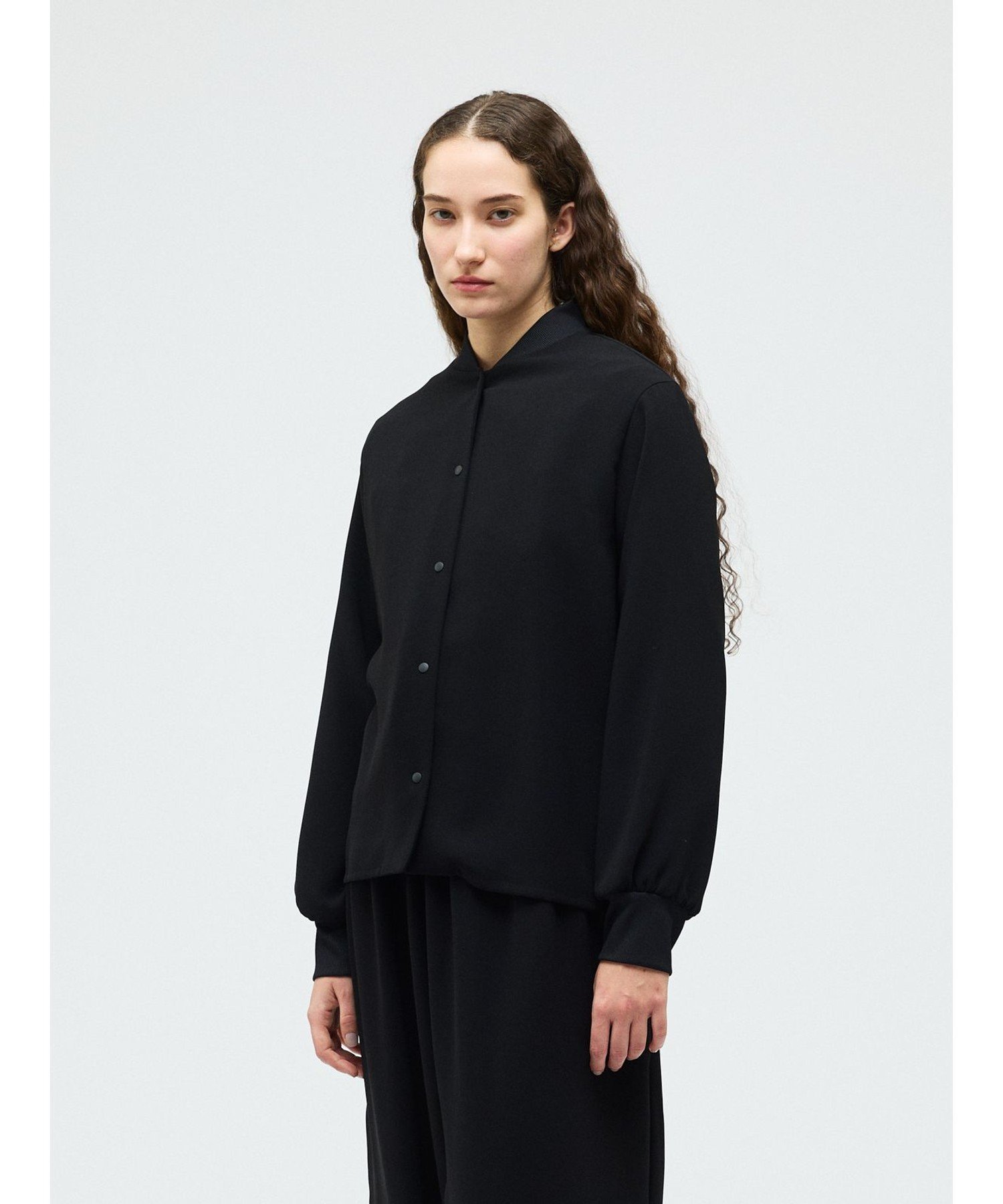 Эта рубашка-блузон имеет матовую поверхность и мягкую драпировку благодаря эластичной двойной ткани. Она выглядит как легкий жакет, с ребристой отделкой на воротнике и манжетах для создания непринужденного образа. Гладкая ткань придает ей изысканный вид, не делая ее повседневной. Передние пуговицы — кнопки того же цвета. Длина доходит до бедер, создавая прямую, базовую линию. Эта рубашка отлично смотрится как жакет и легко сочетается с другой одеждой. Мы рекомендуем сочетать ее с брюками на шнуровке (1-260110) и брюками с высокой талией (1-260099) из той же серии.